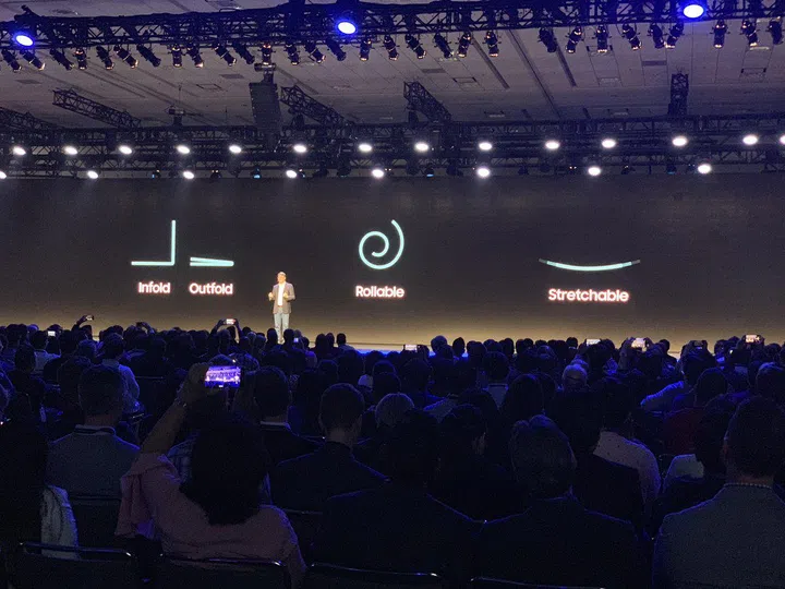 Interestingly, this folding device isn't the only folding display smartphone form factor Samsung is working on. Samsung also teased a rollable AMOLED display and a stretchable one.