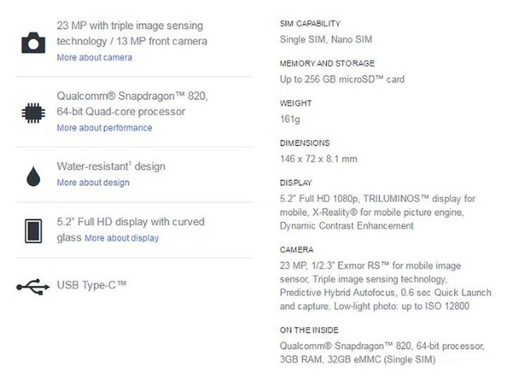 As expected of a top tier phone, it uses a Snapdragon 820 processor with 3GB of RAM for its processing needs. The rest of its specs are as follows:-