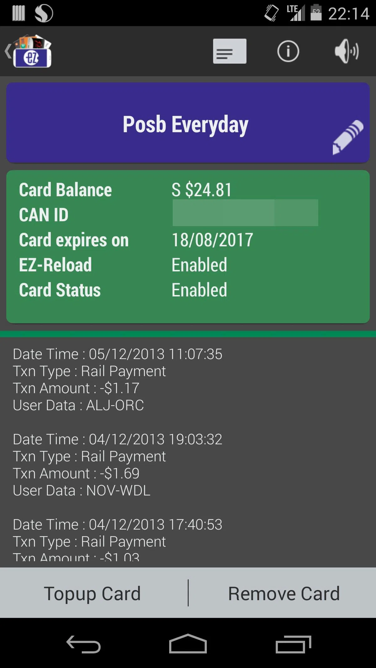 The app not only allows you to perform top-ups, it also enables you to view the card transaction history (up to the last 30 entries), card balance viewing, management of multiple cards and personalization. You can name the different cards according to your preferences.