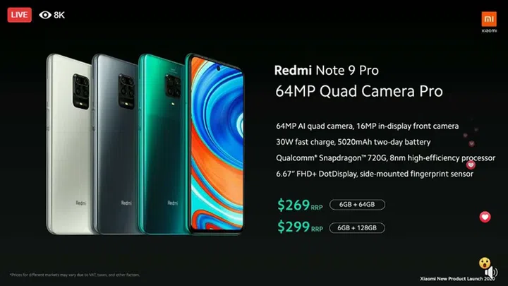 Globally, the Xiaomi Redmi Note 9 Pro will start retailing around mid-May 2020, with more details available closer to the launch date:
