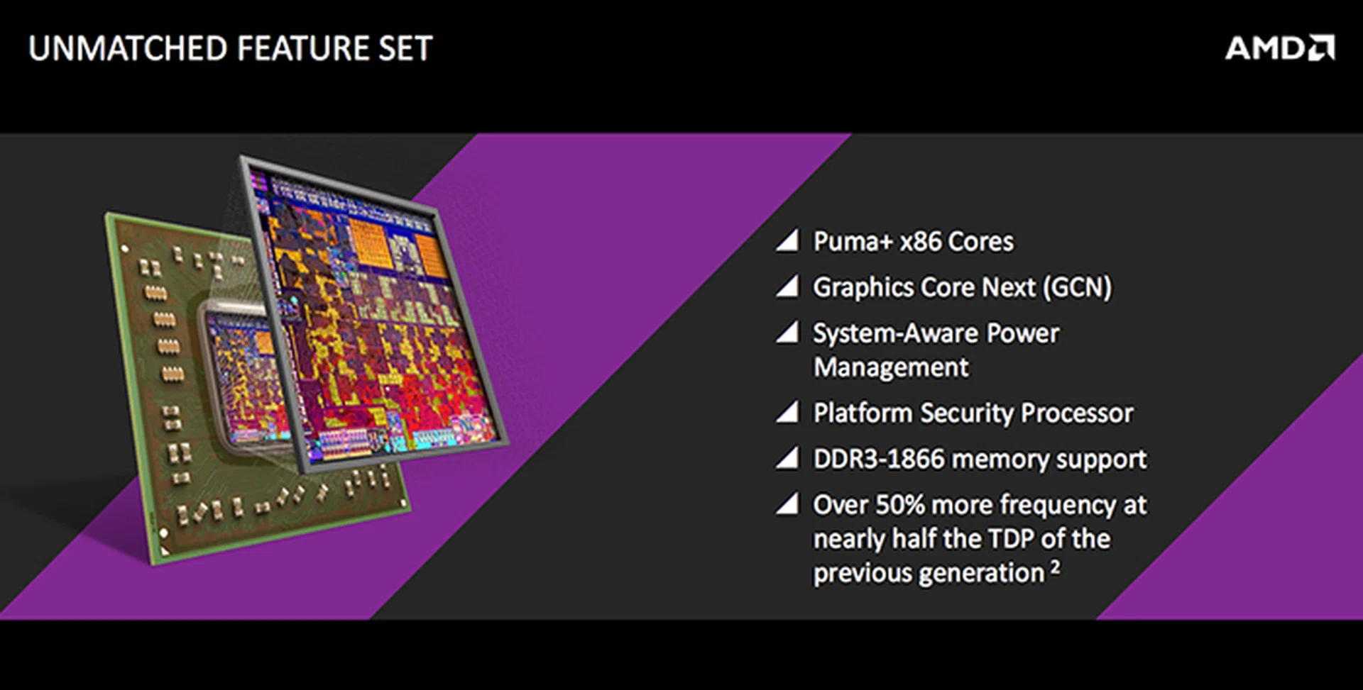 Briefly put, the new Beema and Mullins APUs are an incremental update of Kabini and Temash. The headline change here is the use of new Puma+ cores and other hardware improvements and optimizations to reduce power leakage and boost CPU frequencies. Also new to Beema and Mullins is the addition of an ARM Cortex-A5 with ARM TrustZone technology for security. And to improve power efficiency, the new APUs will support DDR3L (low-voltage) and various hardware optimizations and enhancements have also been undertaken to reduce power leakage.