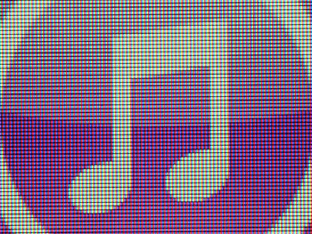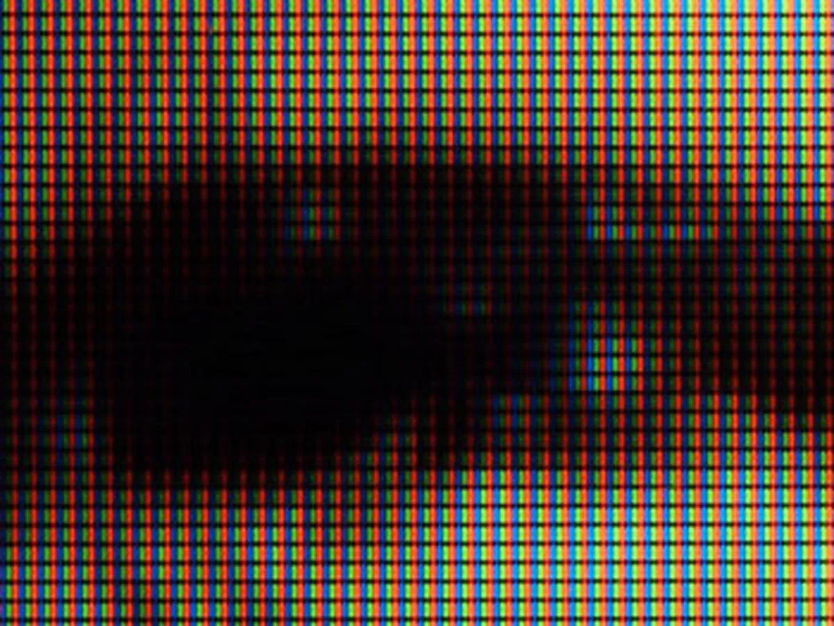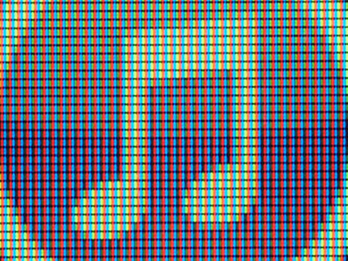 And finally, to show you just how rich in pixels the new iPad's screen is in comparison to the iPad 2 and the Samsung Galaxy Tab 7.7, here's a 100% crop of an image we shot off their screens. You can clearly see the RGB (red, green, blue) sub-pixels on the iPad 2, and if you squint you can also make them out on the Galaxy Tab 7.7. But there are so many pixels crammed into the new iPad that they just become a dense mess - if our macro lens can't make the individual pixels out at this magnification then it's doubtful our eyes will.