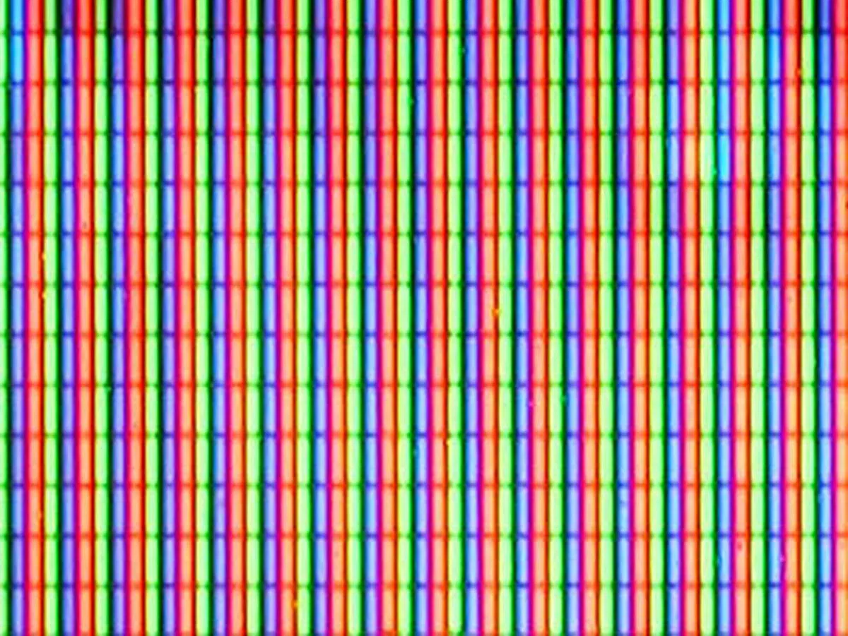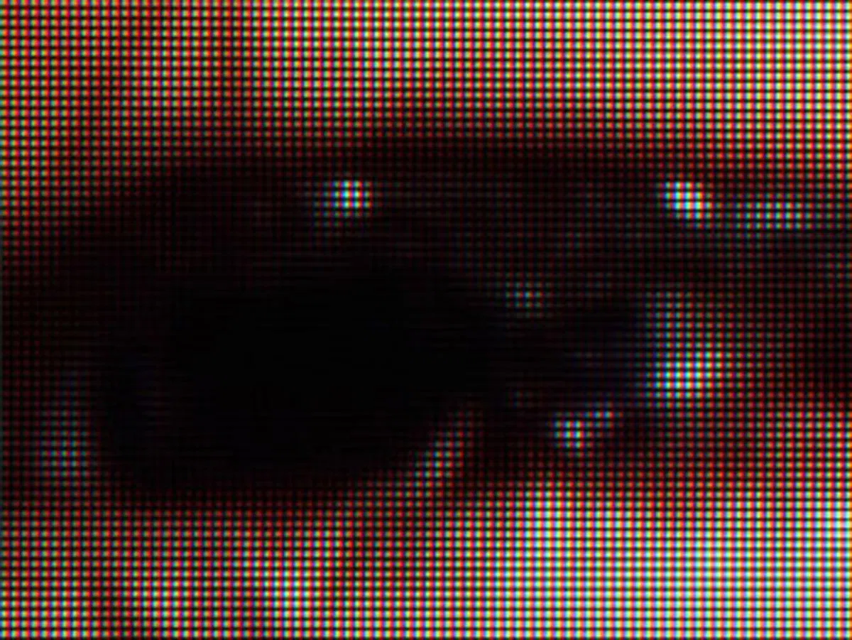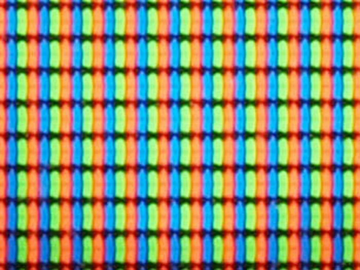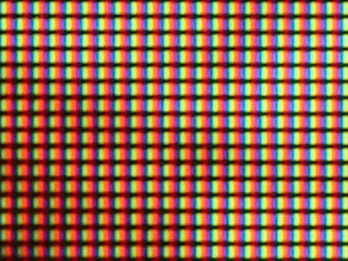 And finally, to show you just how rich in pixels the new iPad's screen is in comparison to the iPad 2 and the Samsung Galaxy Tab 7.7, here's a 100% crop of an image we shot off their screens. You can clearly see the RGB (red, green, blue) sub-pixels on the iPad 2, and if you squint you can also make them out on the Galaxy Tab 7.7. But there are so many pixels crammed into the new iPad that they just become a dense mess - if our macro lens can't make the individual pixels out at this magnification then it's doubtful our eyes will.