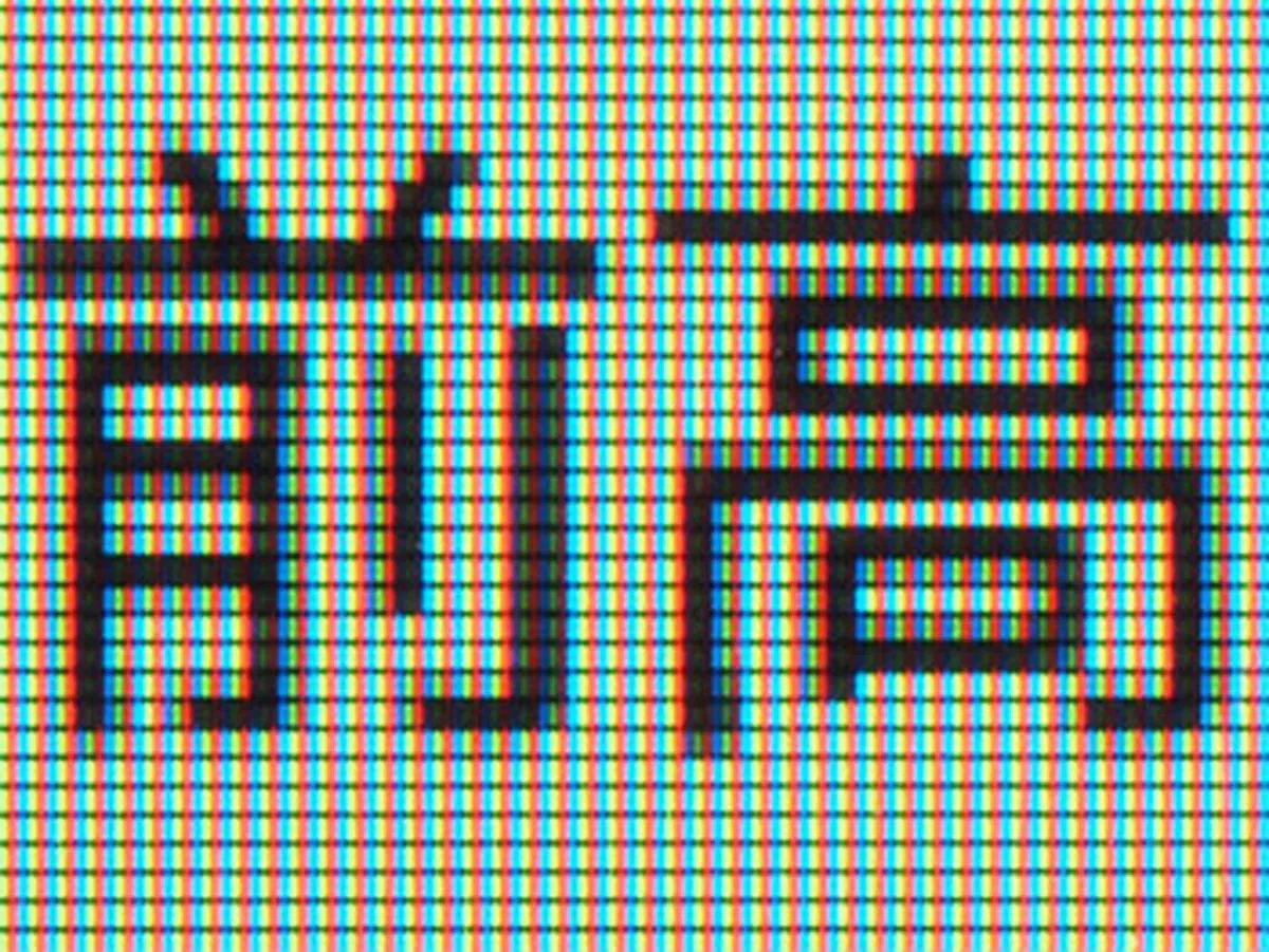 Considering the close proximity of the lens to the screen, our close-up crops are only 25% crops. If we crop 100%, all you'll see are pixels. Take note that the images have been shot through a lens, processed by our camera, re-sized and saved again for online viewing and are further interpreted through your monitor. The colors depicted in these images won't look exactly the same as what you'll see holding an iPad in real life, but we're confident you'll still be able to see a clear difference in these comparison images.