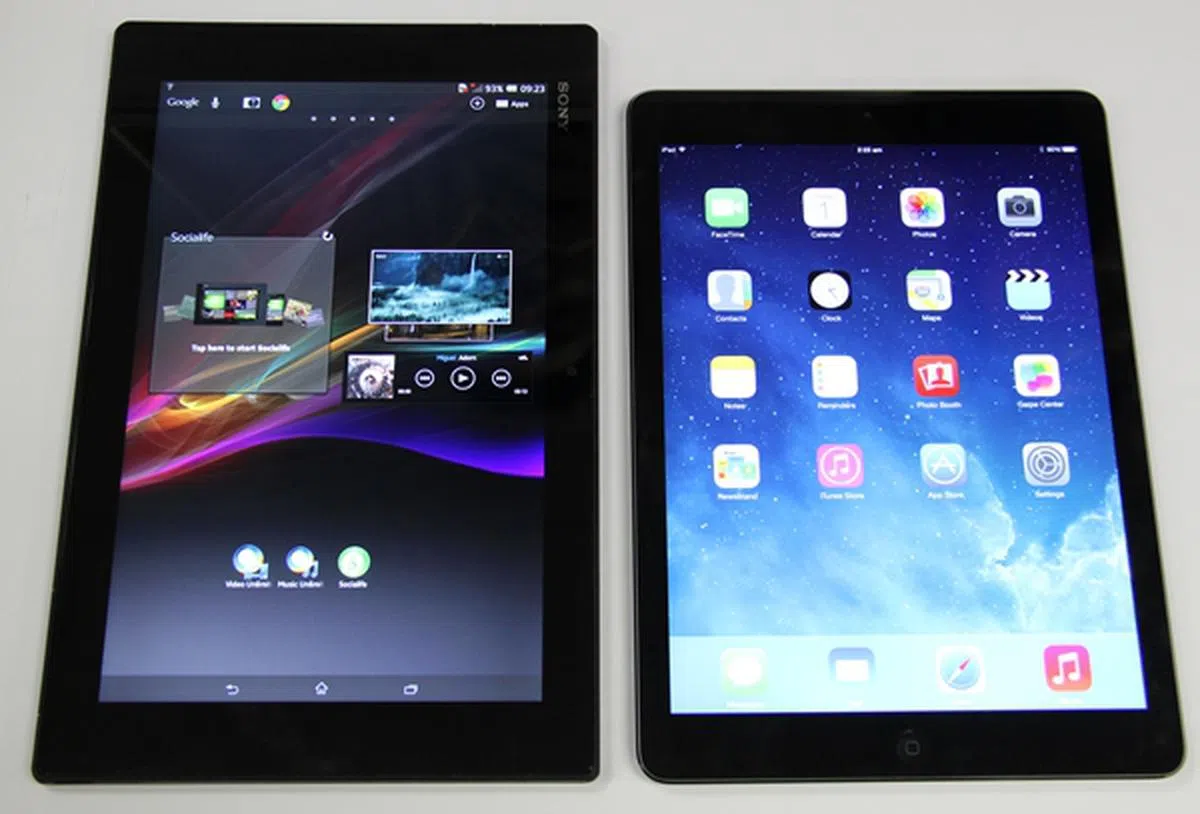 - Apple is still unrivaled in all areas related to design build quality and finish. While the Xperia Tablet Z is still thinner than the iPad Air, the overall feel and handling of the iPad Air is slightly better thanks to its aluminium build.