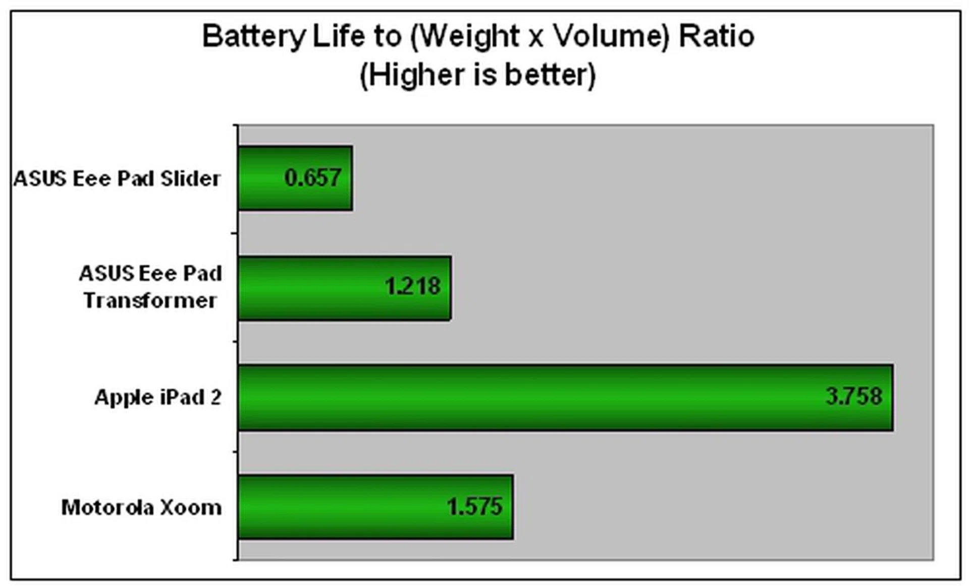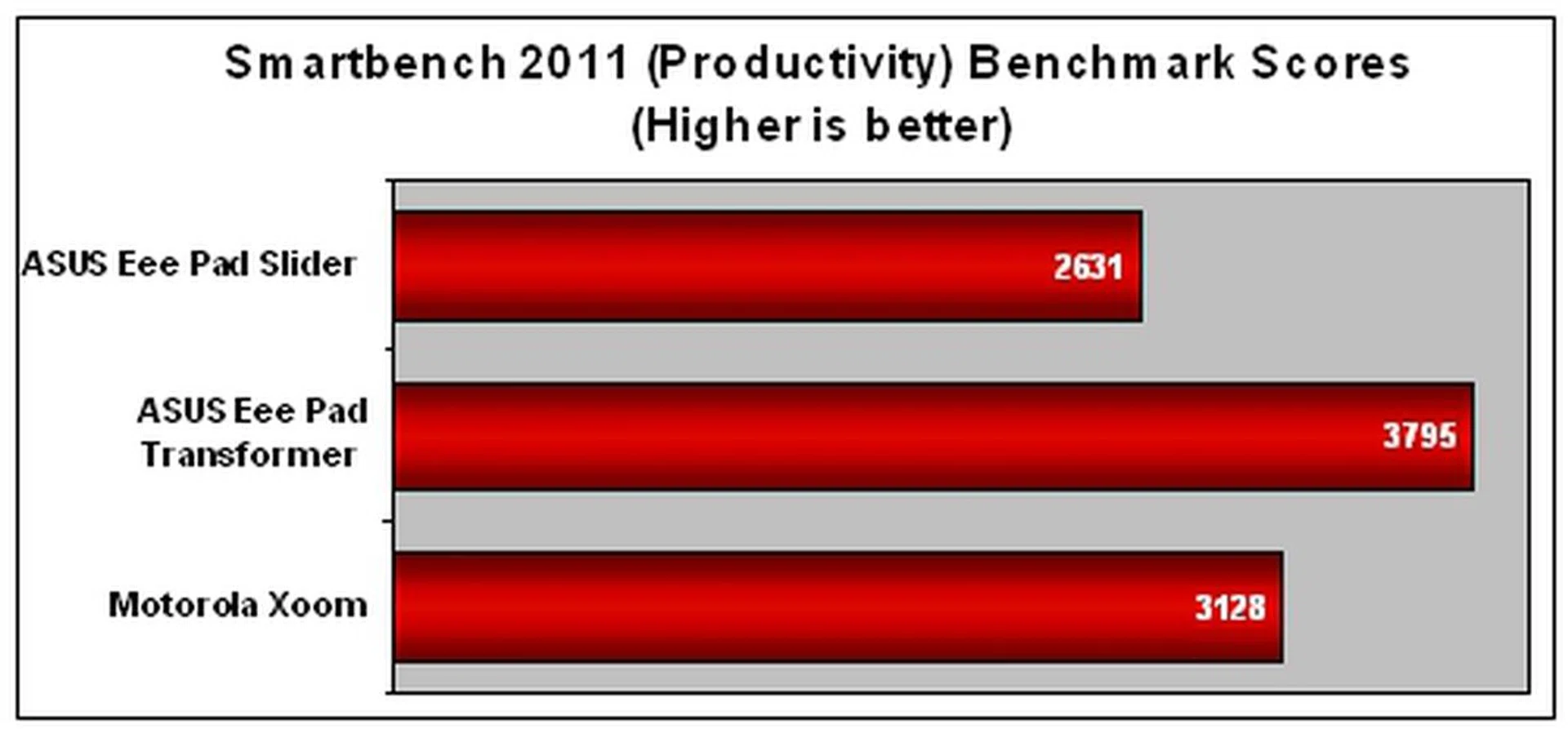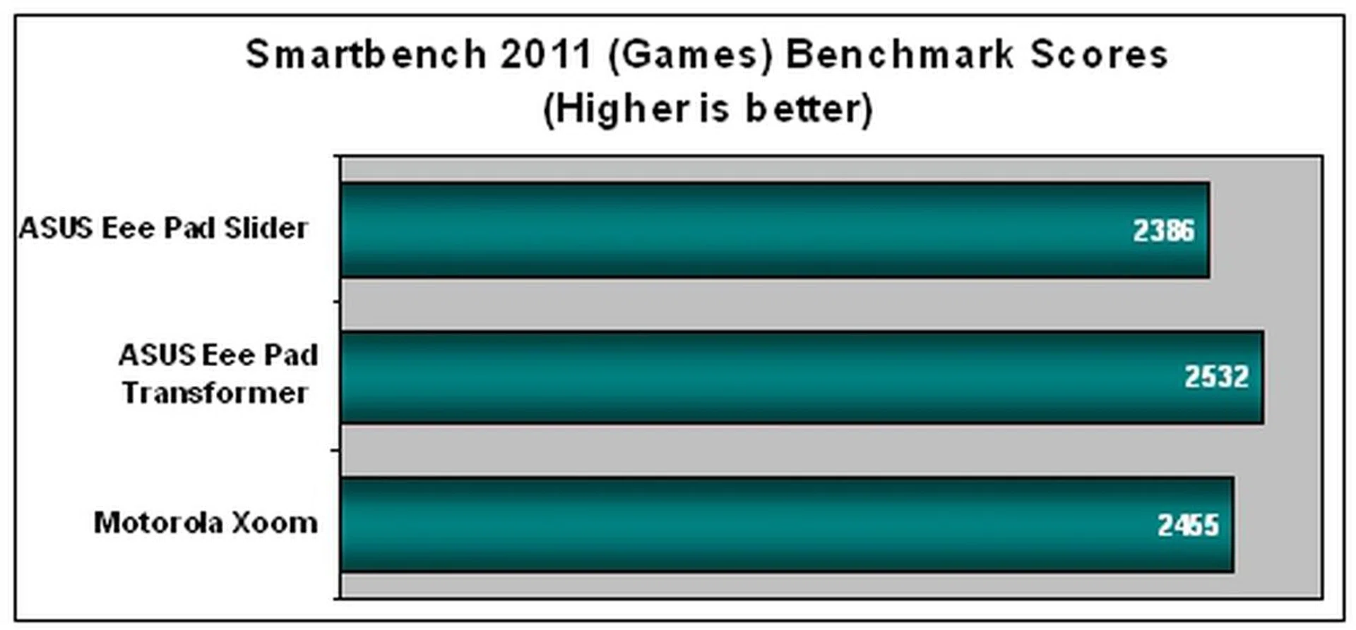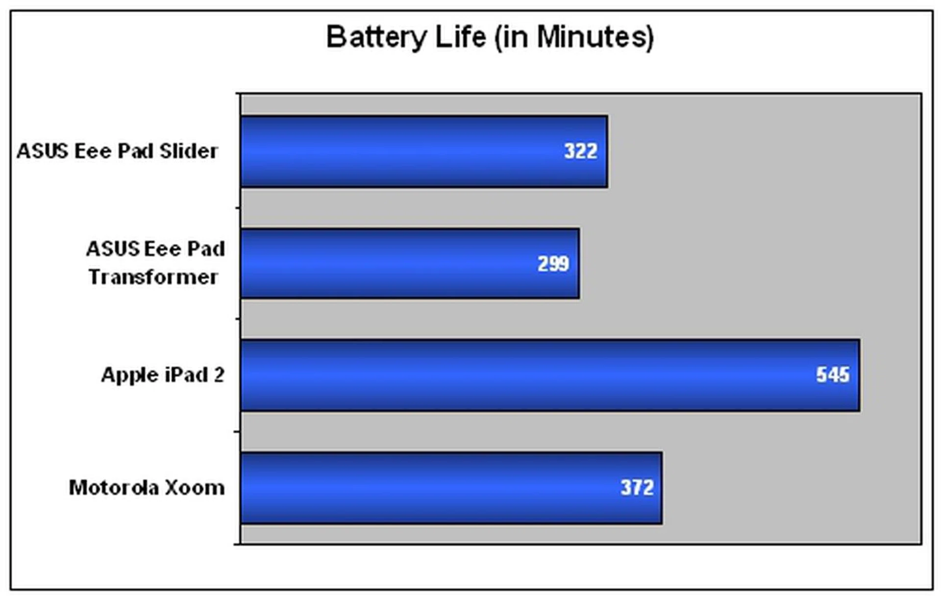 Device | ASUS Eee Pad Slider | ASUS Eee Pad Transformer | Apple iPad 2 | Motorola Xoom |