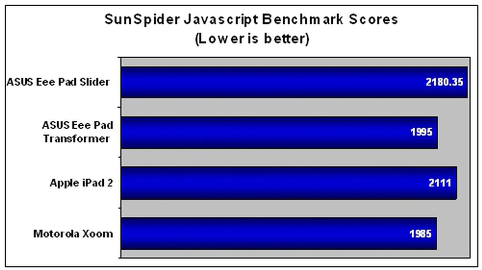 - SunSpider JavaScript benchmark measures the browsing performance of the tablet.