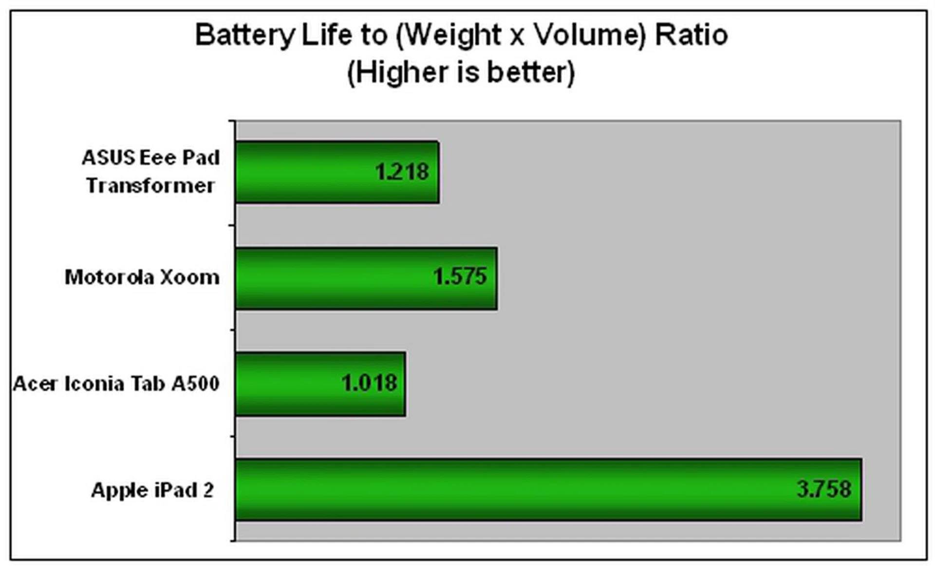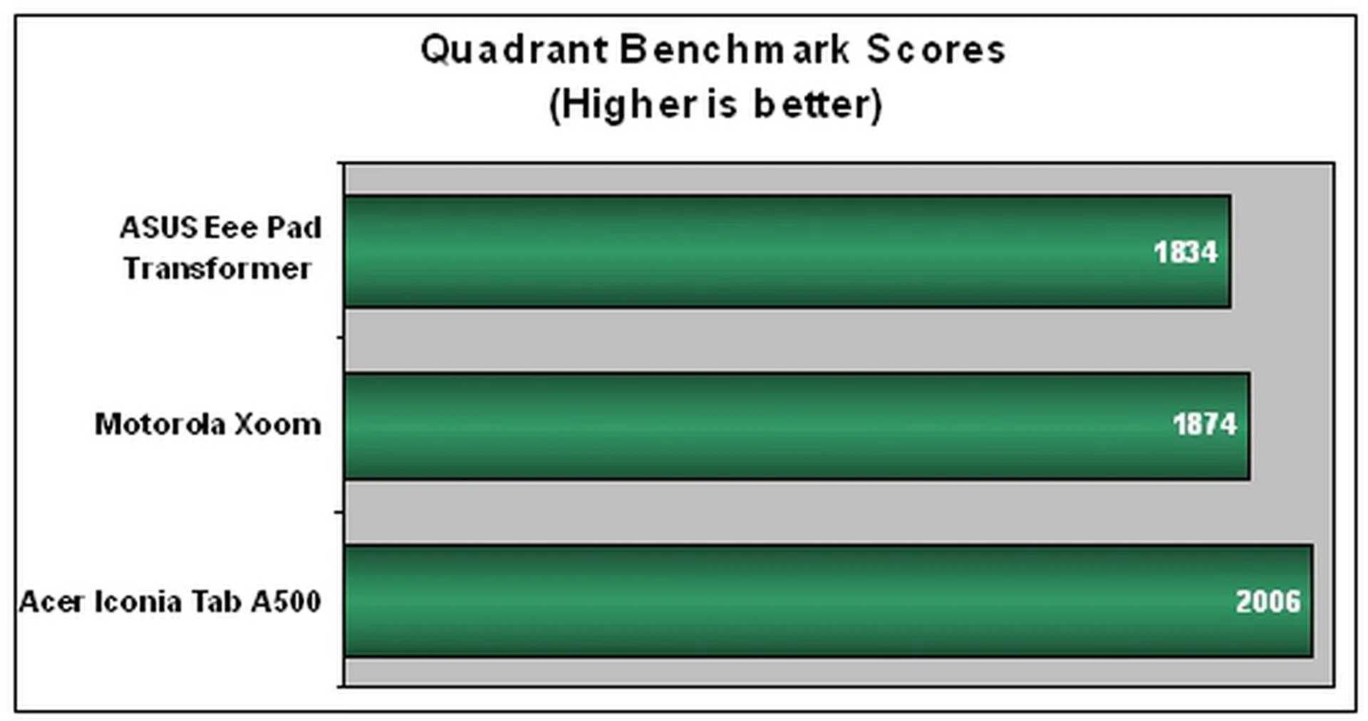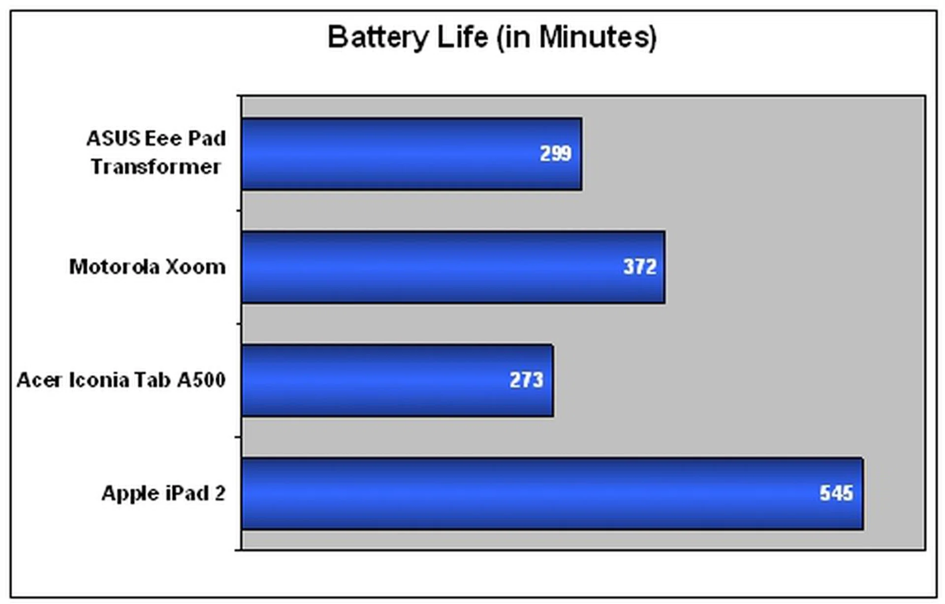 Device | ASUS Eee Pad Transformer | Motorola Xoom | Acer Iconia Tab A500 | Apple iPad 2 |