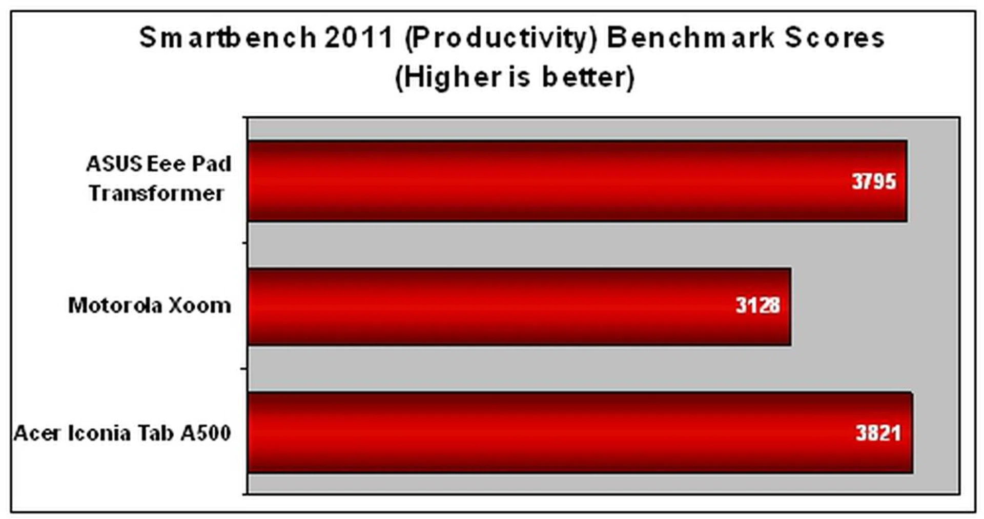 Judging from the scores of the Quadrant and Smartbench benchmarks, the ASUS Eee Pad Transformer is consistent with the other Honeycomb tablets. It follows closely with the leader of the pack, Acer Iconia Tab A500 in most of the benchmarks. This is not surprising as all three tablets are equipped with the same hardware configurations.