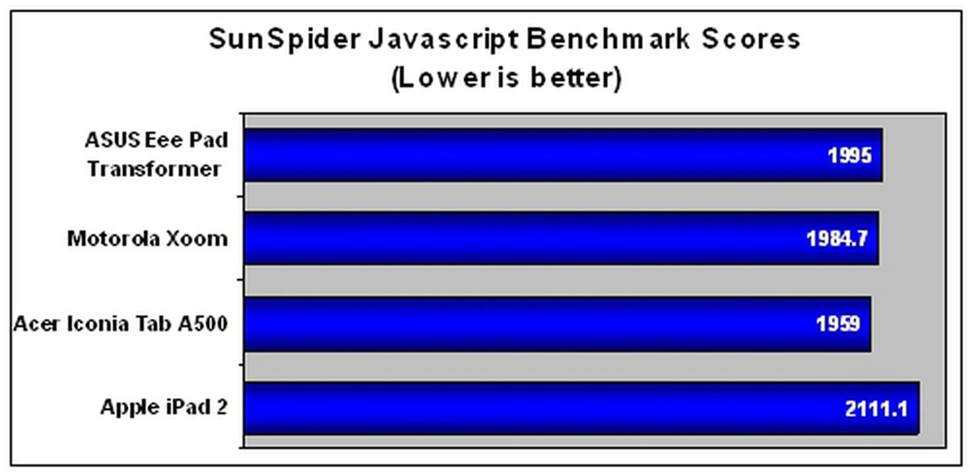 - SunSpider JavaScript benchmark measures the browsing performance of the tablet.
