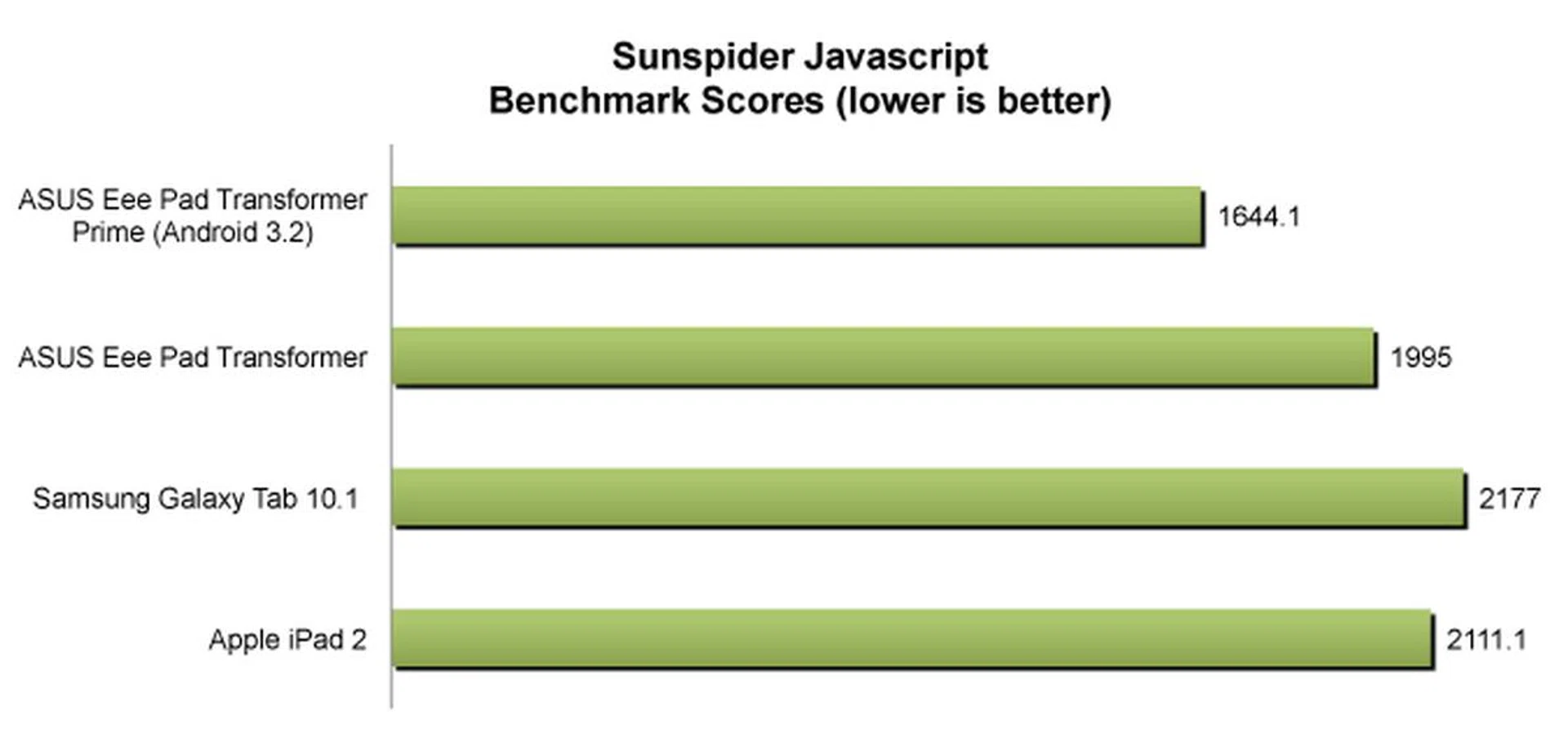 - SunSpider Javascript benchmark measures the browsing performance of the tablet.