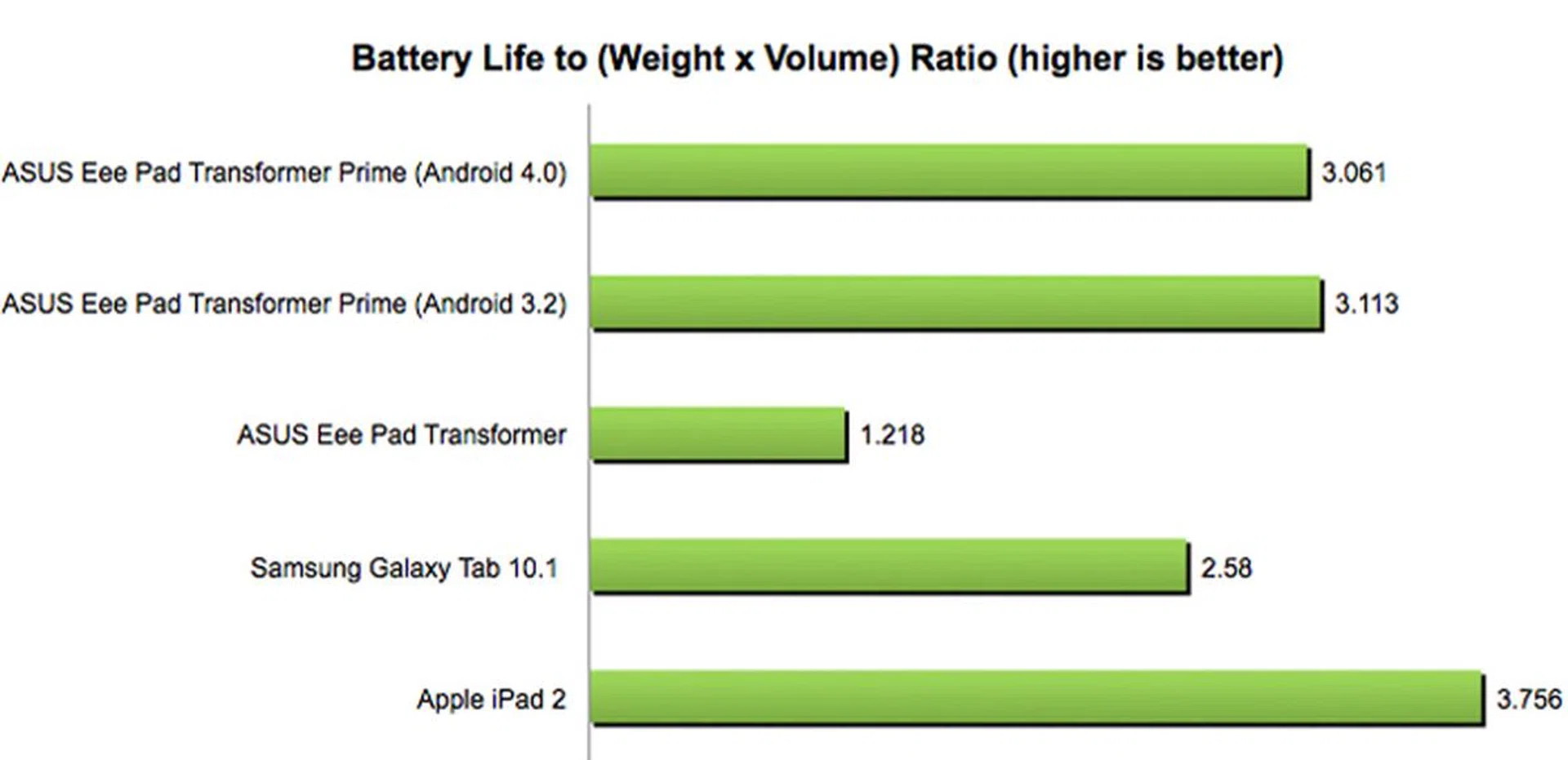 Device | ASUS Eee Pad Transformer Prime | ASUS Eee Pad Transformer | Samsung Galaxy Tab 10.1 | Apple iPad 2 |