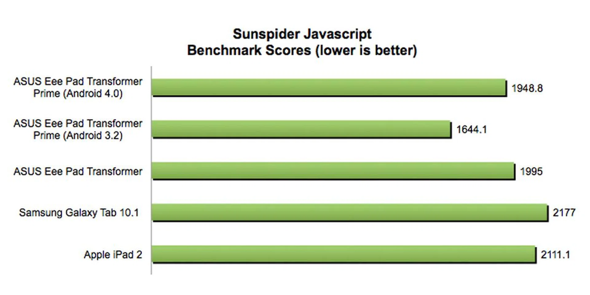 We have since updated the above test with a new set of results based on the Transformer Prime's performance with Android 4.0. Our results did match up to what Google offered in its Android Developer page, with our 1948.8ms score that's somewhat identical to Google's 1963ms. What did come as a surprise to us, is the lower Sunspider score we got out of the Android 3.2 Transformer Prime. Unfortunately, we aren't able to provide you with any concrete reasons for this outcome.