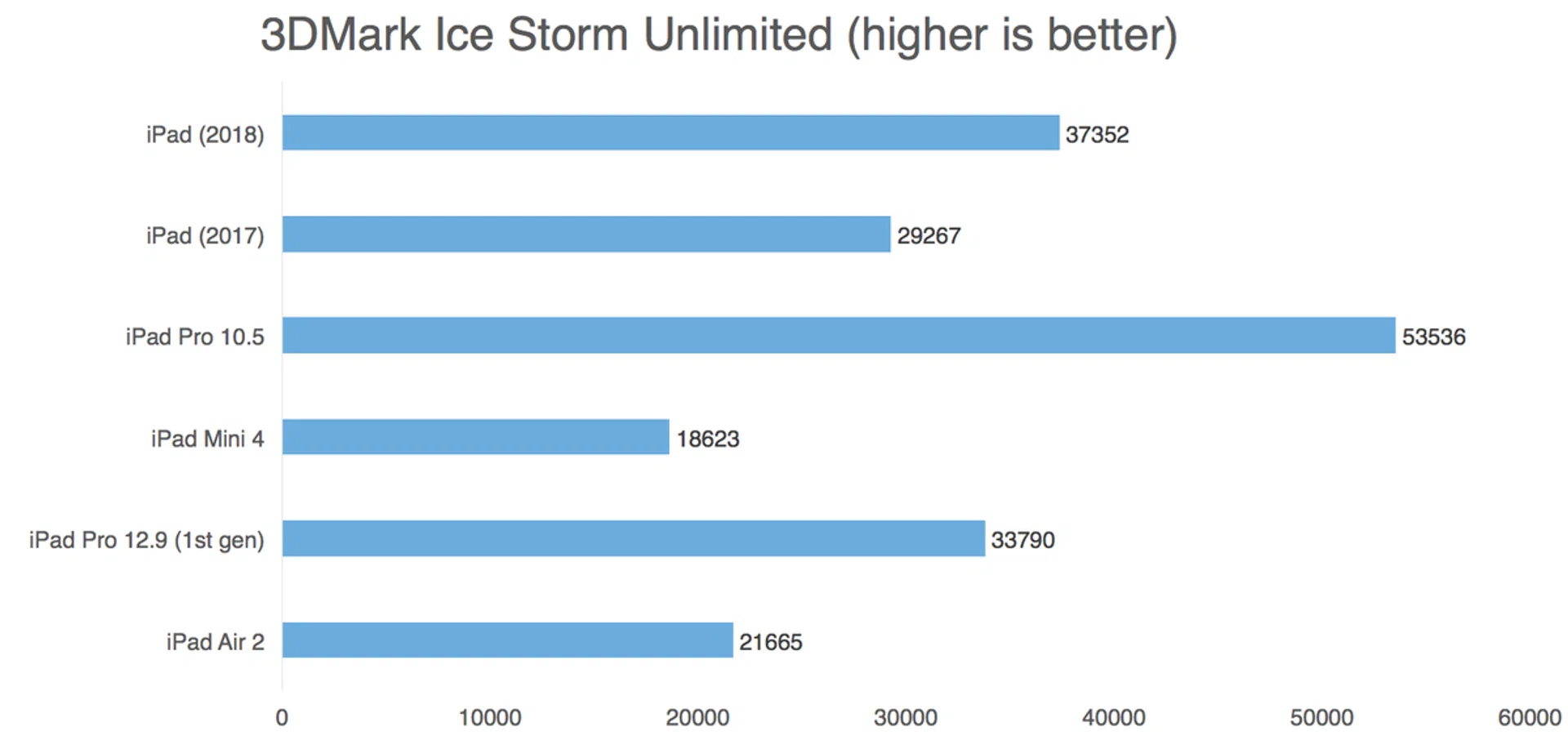 Even so, the new iPad is outclassed by last year's 10.5-inch iPad Pro and its A10X Fusion processor. However, an interesting observation is that the new iPad offers just about the same level of performance as the very first generation iPad Pro, which is powered by the A9X processor. That's progress for you.