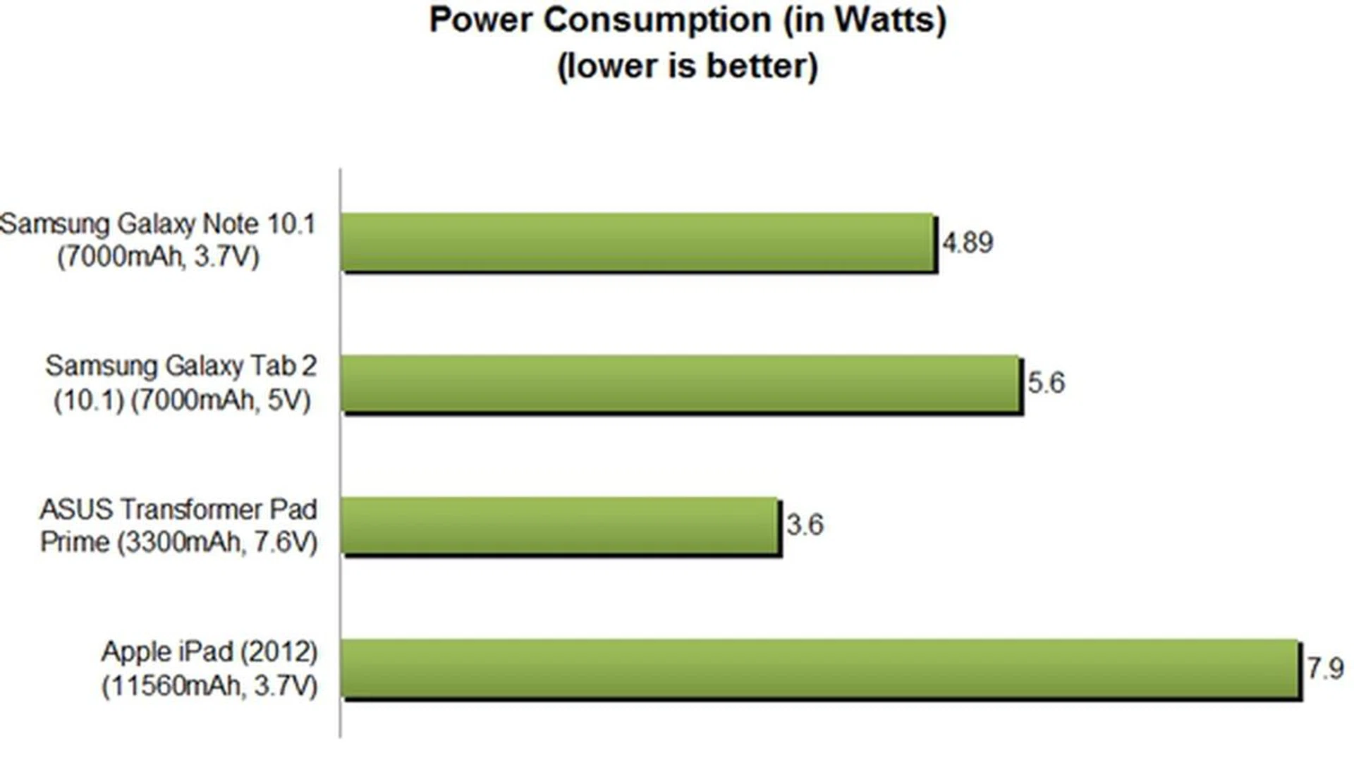 Device | Samsung Galaxy Note 10.1 (3G) | Samsung Galaxy Tab 2 (10.1) | ASUS Transformer Pad Prime | Apple iPad 2012 |