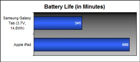Hopefully, the Samsung Galaxy Tab will do as well as the Apple iPad, which lasted for over 11 hours in our battery test. For the Galaxy Tab however, since we couldn't get our hands on the same iTunes clip, we've decided to go with a 720p clip instead. Of course, this will drain the battery faster as opposed to a 480p clip, but from our unofficial tests, the differences aren't that notable. However, moving forward, we'll be using the same clip for all other tablets coming into the lab and we'll have a better comparison set soon enough. Lastly, we left Wi-Fi on but turned off the 3G service since we last tested the basic iPad that didn't have 3G support. Additionally, we can never be sure if all future tablets would come with 3G capabilities by default and we don't want to end up being unable to compare other tablets across the board. Now that you know how our testing is done, let's find out how the tablet performs.