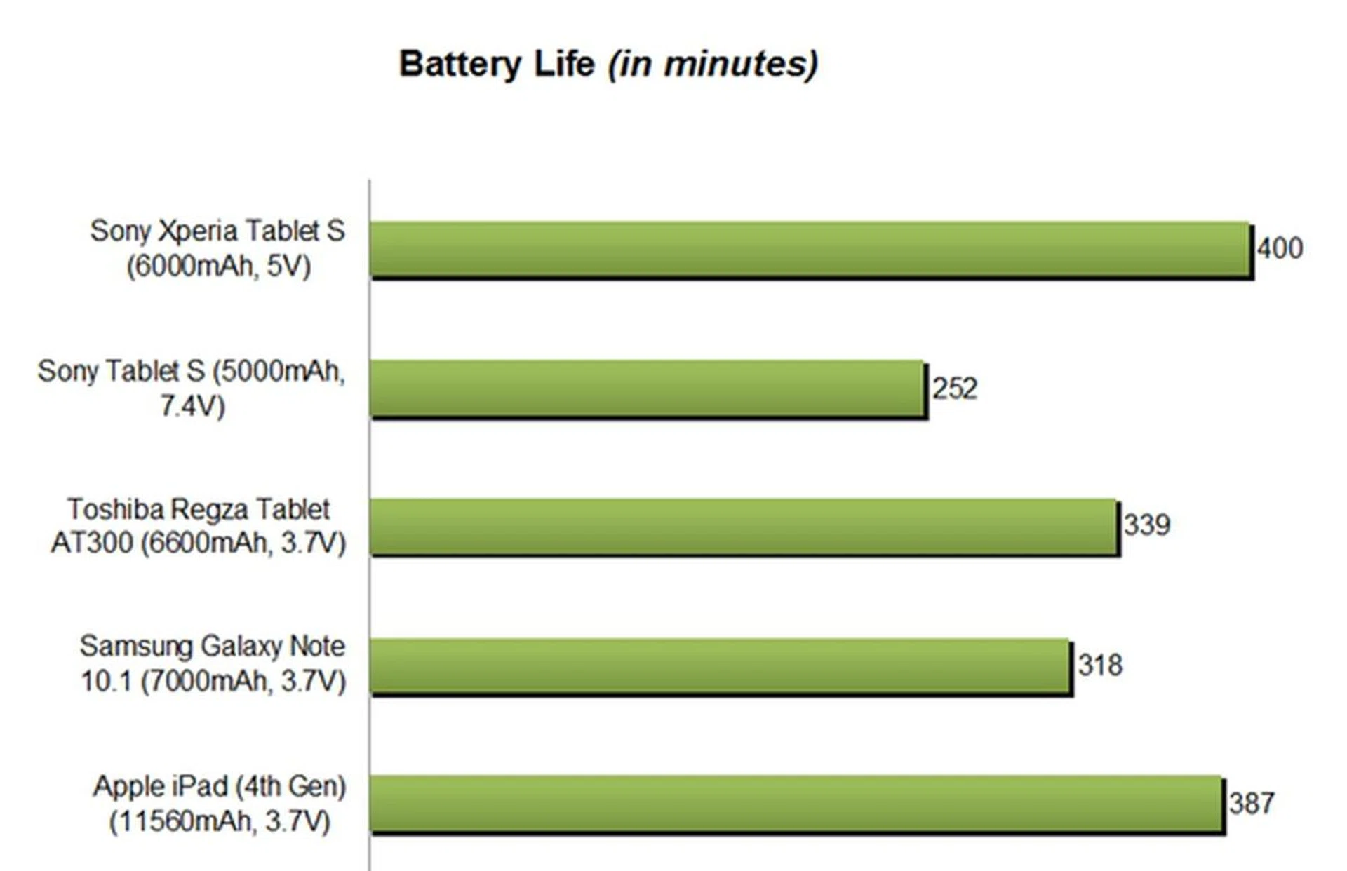 Prior experience with most 10.1-inch Android tablets has tuned down our expectations when it comes to battery performance. Fortunately, Sony has surprised us with a stellar battery mileage on the Xperia Tablet S. Lasting about 6 hours and 40 minutes, the Xperia Tablet S easily best the competition despite having the smallest battery capacity among all. Nonetheless, the screen size difference of 0.5 to 0.7-inch has to be taken into consideration too.