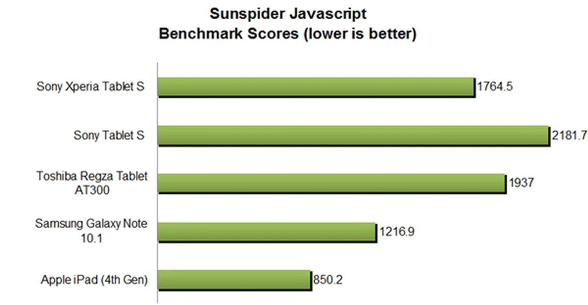 - SunSpider Javascript benchmark measures the browsing performance of the tablet.