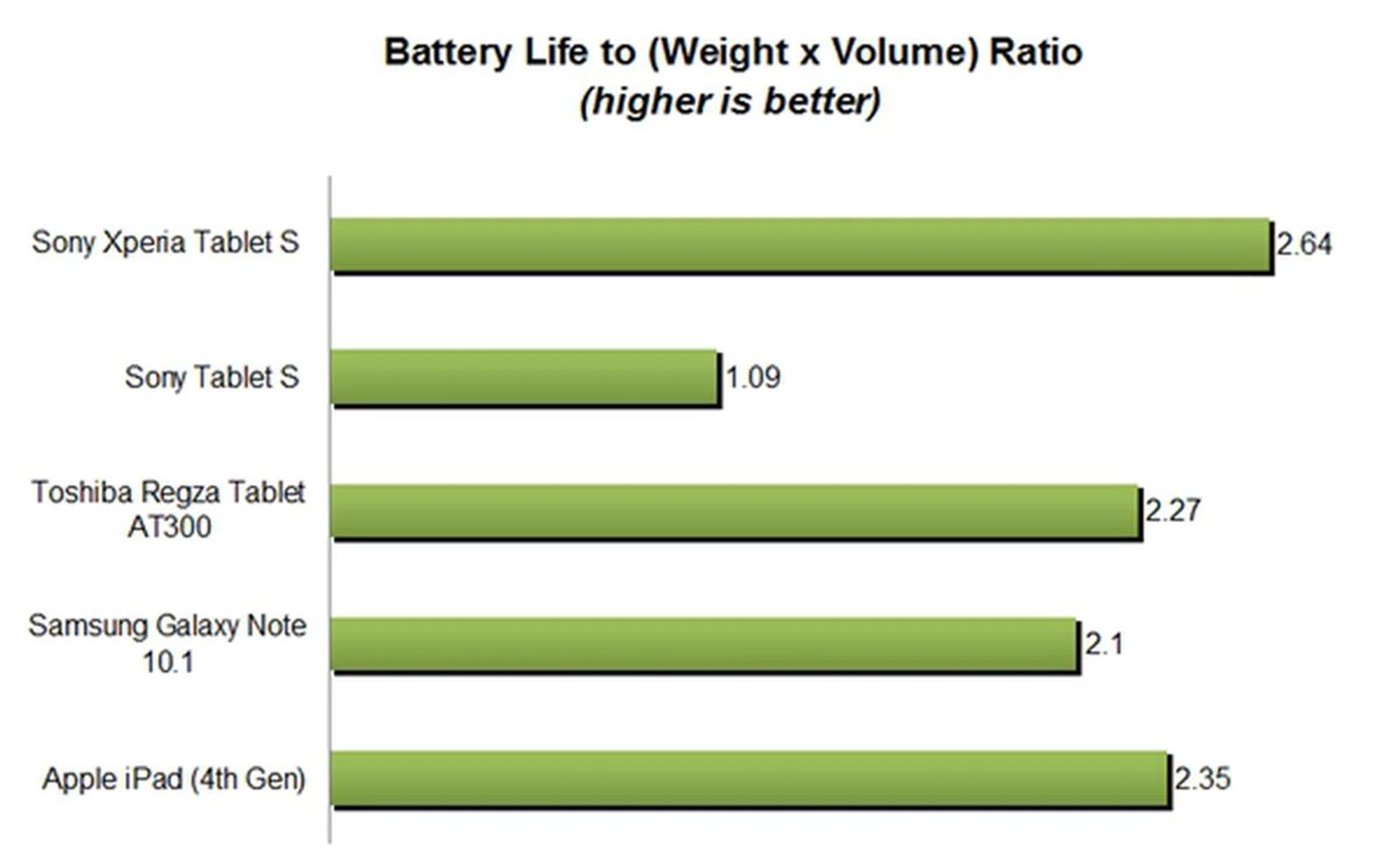 Not surprisingly, the Sony tablet has the second lowest power consumption among the tablets compared. In the Portability Index where each device is assessed on its ability to balance battery mileage. with its size and portability, the Xperia Tablet S easily took the top spot due to its lightweight form factor and great battery mileage.