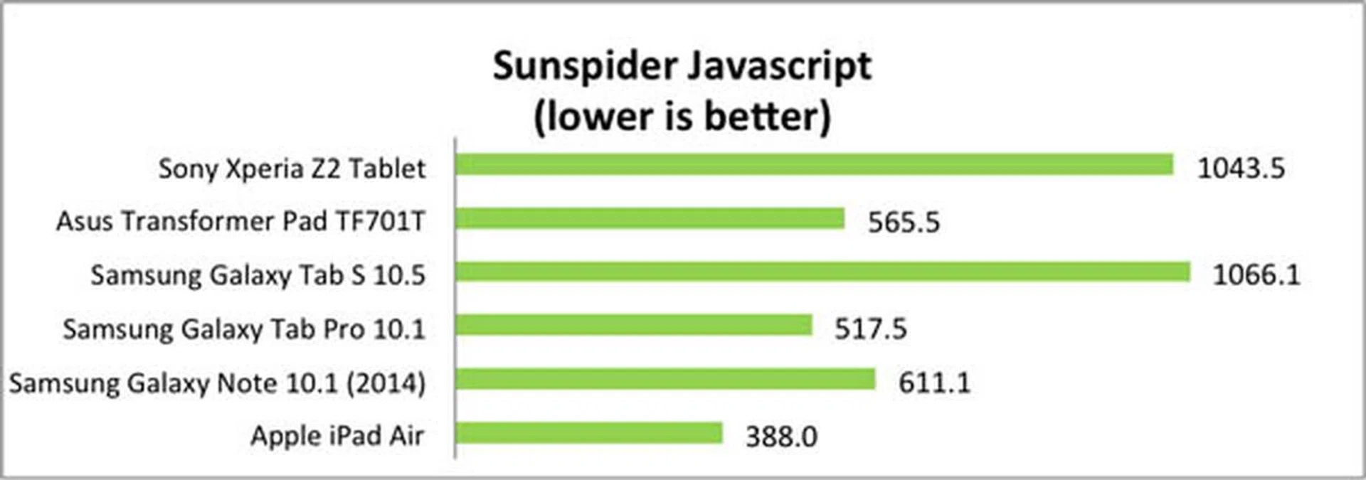 The Z2 Tablet’s SunSpider score is the second slowest amongst all other tablets.