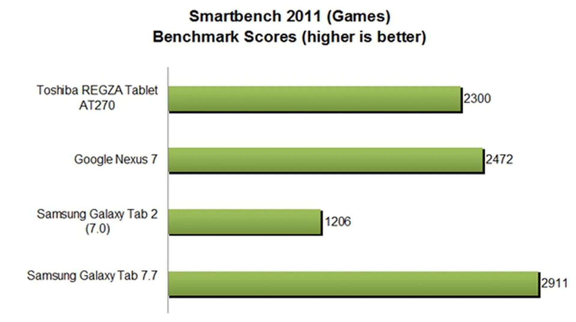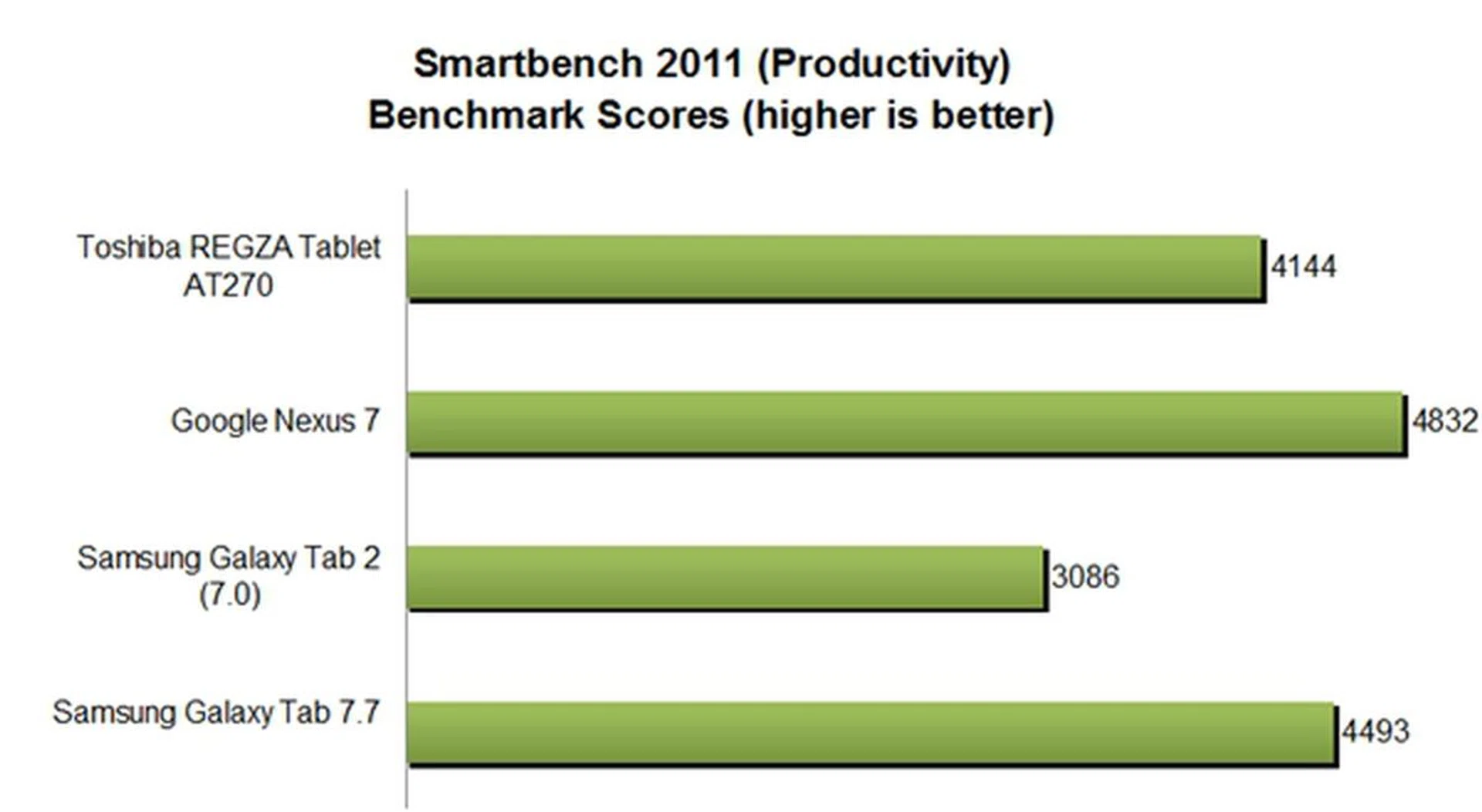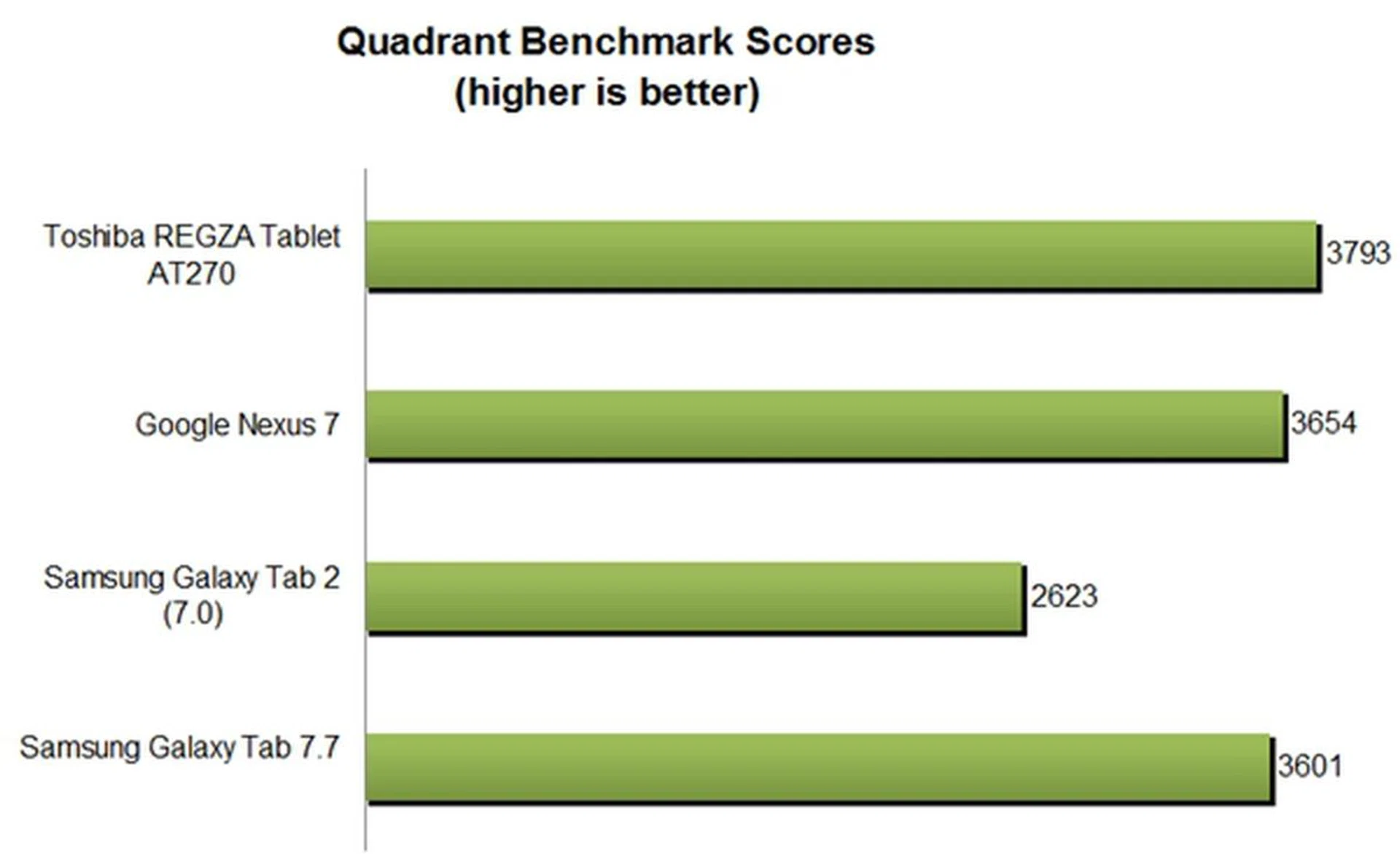 Competition in the 7-inch tablet market is heating up as Apple recently joined the party with its iPad Mini. As such, we pit the Regza Tablet AT270 against the latest crop of 7-inch tablets which include the Apple iPad Mini, Google Nexus 7, Samsung Galaxy Tab 2 (7.0) and Galaxy Tab 7.7 to see how it fares. The following benchmarks are used for raw performance evaluation: -