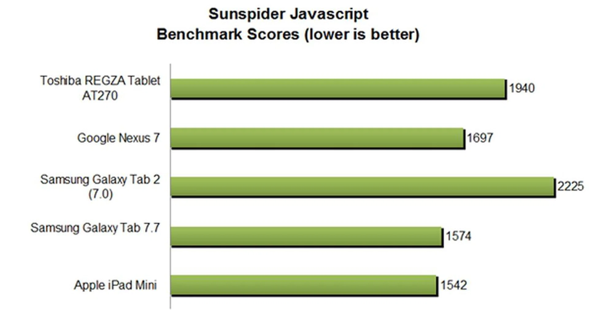 - SunSpider Javascript benchmark measures the browsing performance of the tablet.