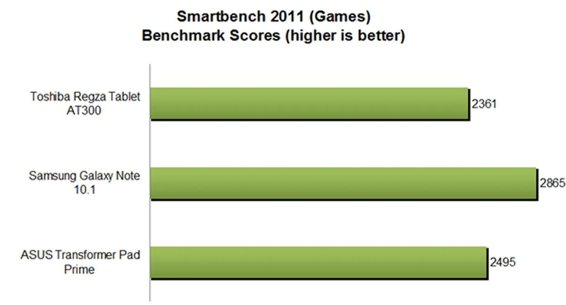The NVIDIA Tegra 3 chipset is starting to show its age and clearly had difficulties keeping up with the latest mobile processors that the other tablets are equipped with. Take the Quadrant benchmark results for instance: the Samsung Galaxy Note 10.1 easily surpassed the two Tegra 3-powered tablets and led the race by a healthy margin. The Smartbench 2011 results are a mixed bag, with both mobile processors gaining an upper hand for each sub-test respectively.