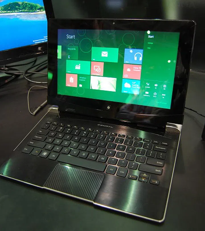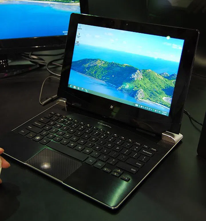 A 11.6-inch hybrid tablet from Compal shows off AMD’s proposition of balanced computing with a low powered Trinity APU. Using Windows 8 and pairing with its keyboard dock, it instantly transforms to an ultrathin notebook.