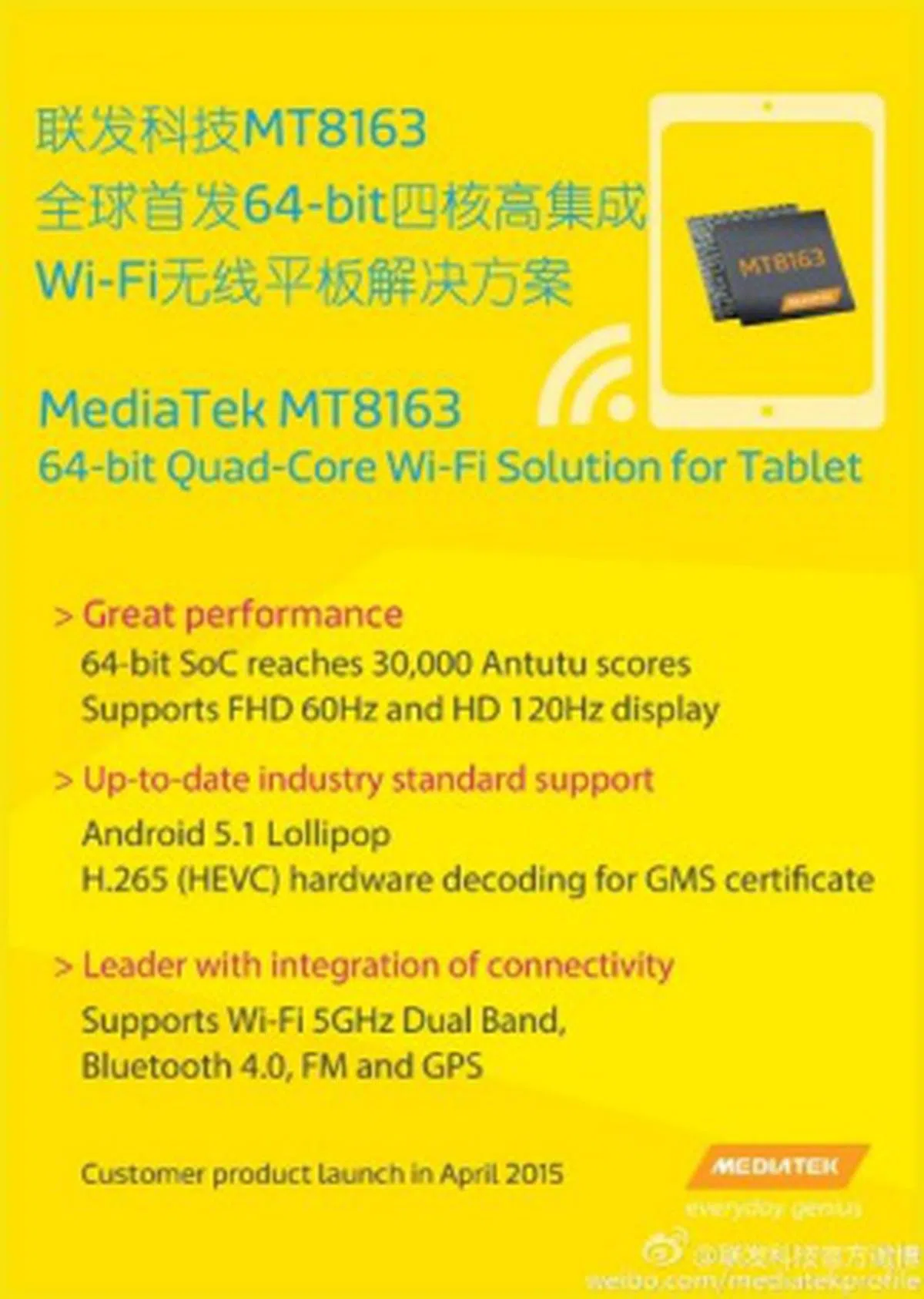 MediaTek launches 64-bit MT8163 and MT8735 chips for entry to mid-range tablets