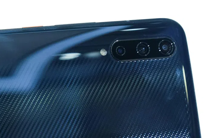 As you can see, it looks like this will have a triple camera setup too. This close-up also gives you a better look at the carbon fiber-like design on the back of its otherwise glossy surface. Quite a handsome device we must say.