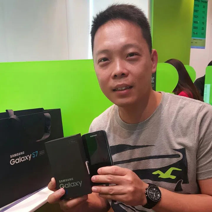 “I started queuing at 8 A.M., and I had to get the S7 Edge. The features and functions are so much better than other phones, especially its water-resistance – it was what made up my mind to get it.” – Wong Tuk Keong, 40.