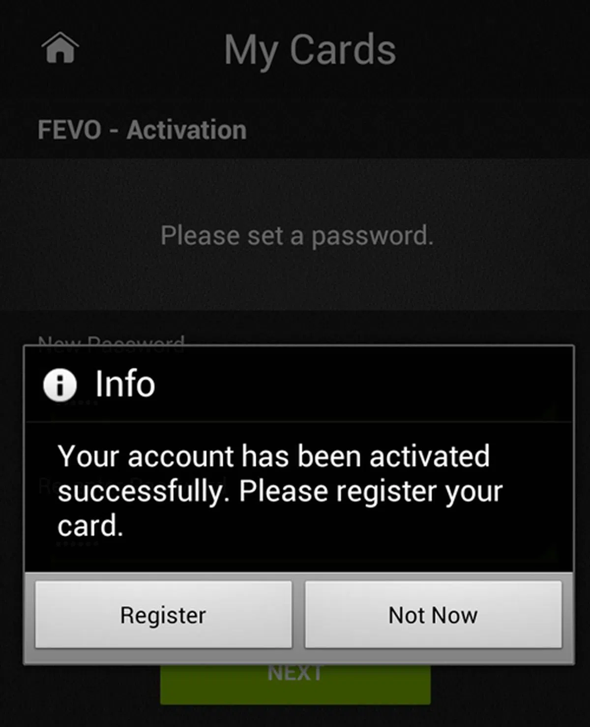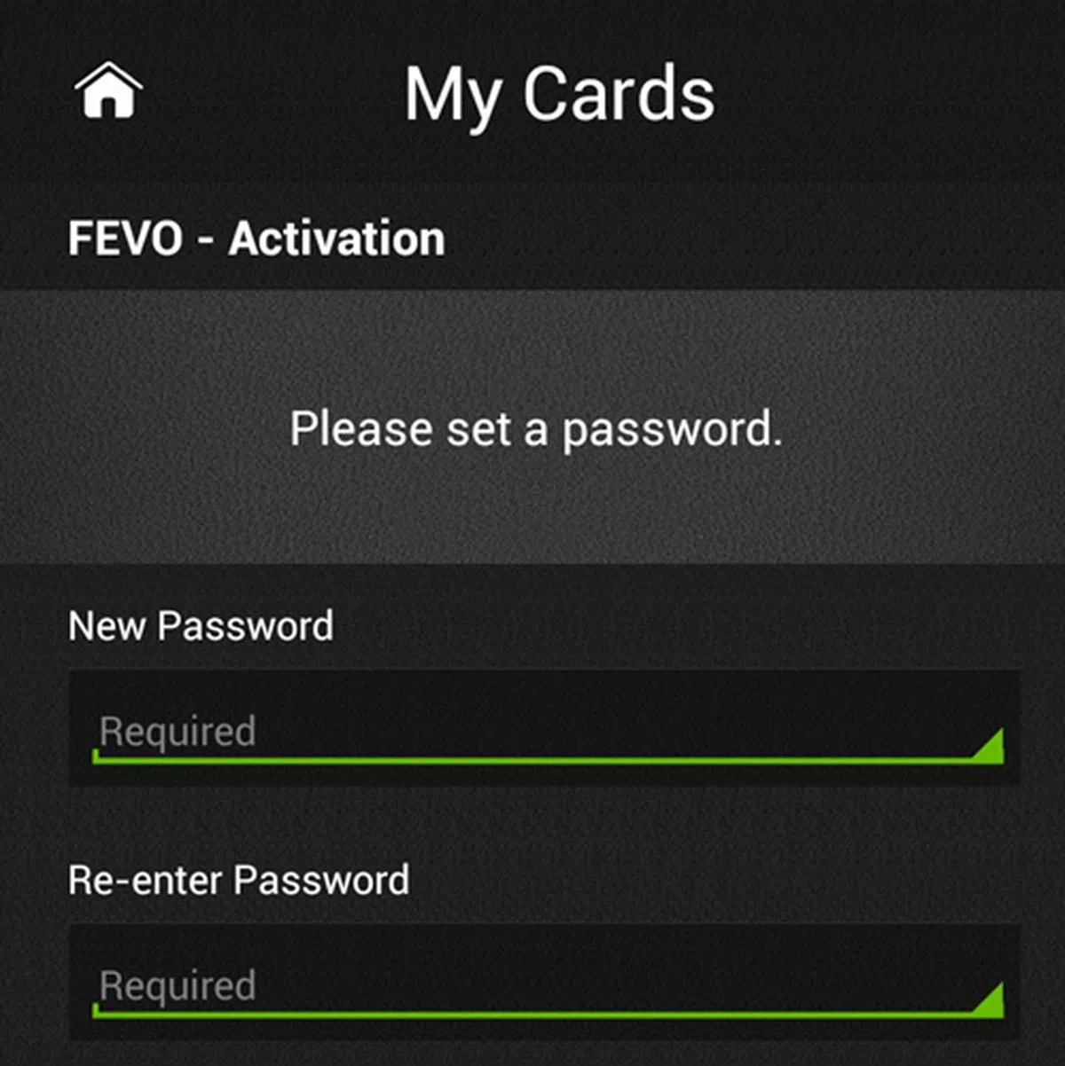 Payment Setup via NFC FEVO Prepaid MasterCard