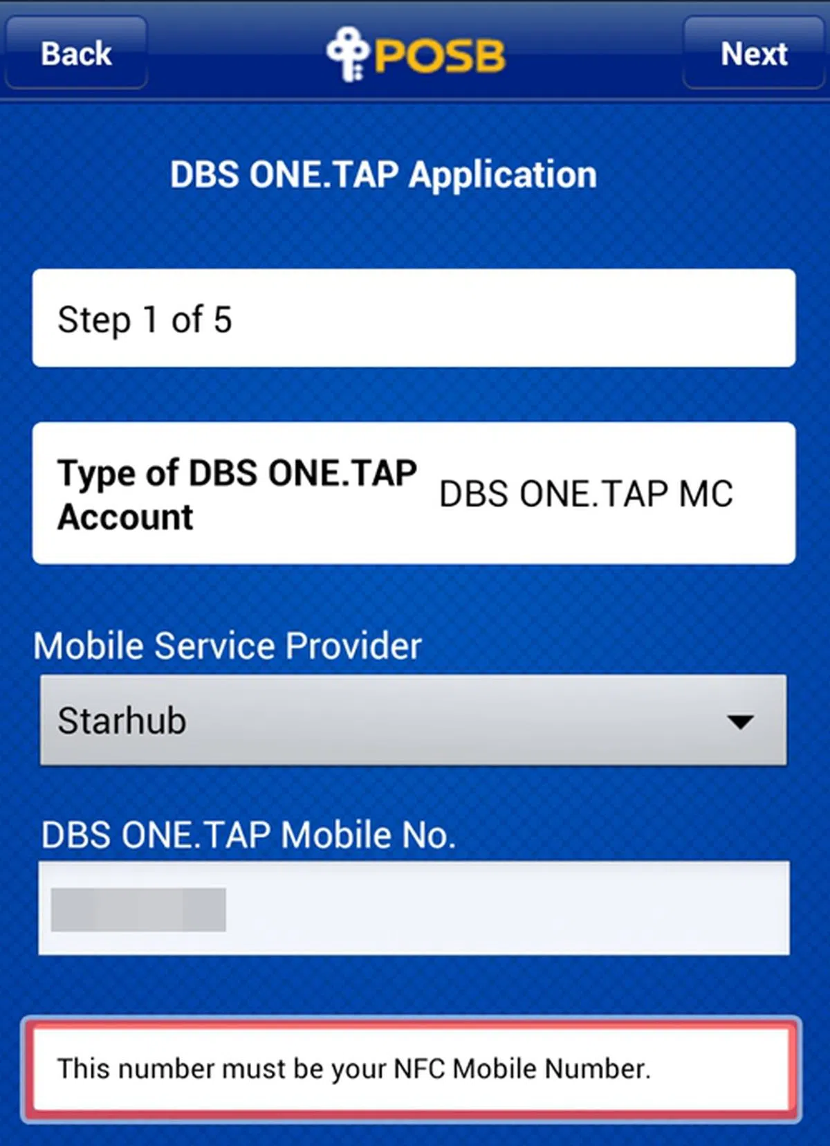 Payment Setup via DBS One.Tap MasterCard PayPass