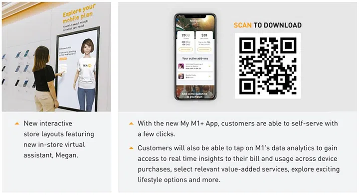 Examples of such enhancements worthy of its rebrand include a refreshed M1 app with said data insights for customers and an in-store virtual assistant (Megan) for physical M1 outlets.