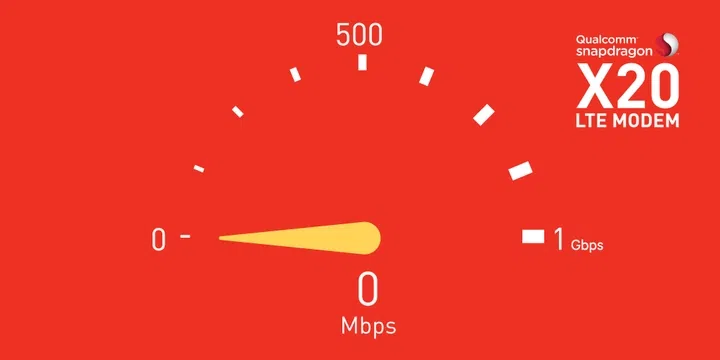 The Snapdragon X20 LTE modem is a step up from their existing Gigabit-class product, the X16.