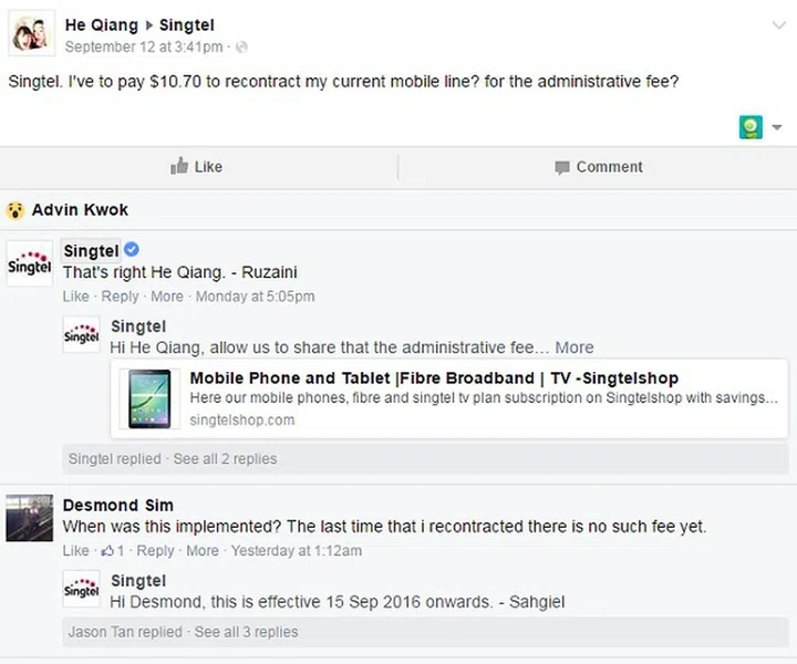 So if you're a Singtel customer, the easiest way moving forward to avoid the admin fee is to re-contract online.