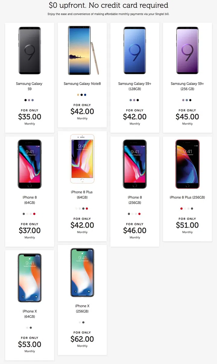 Depending on the phone you’re getting, the cost of the lease starts at S$35 a month. (There's no upfront cost.) Right now, there are 10 handset models to choose from, and the most expensive lease is for the 256GB iPhone X, which is S$62/month.