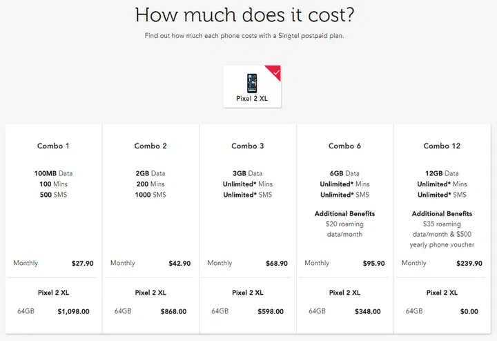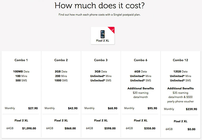 (For what it's worth, it's interesting to note that Singtel's Pixel 2 XL combo prices are higher than that of the iPhone 8 Plus'.)