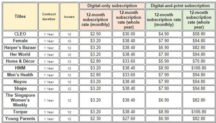 Further to that, the Singtel Newsstand service allows for subscription flexibility. If a user gets a print-and-online subscription, they can choose a different magazine title for one of those subscriptions, instead of receiving the same title online and offline.