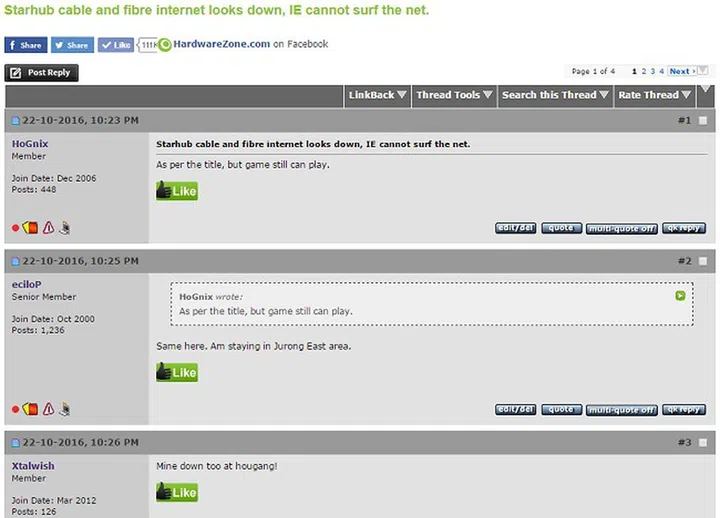 Since the night of 22nd October, scores of StarHub’s home broadband customers took to the company’s Facebook page to vent their frustration for the downtime of internet connectivity. Here’s a rundown of what happened.