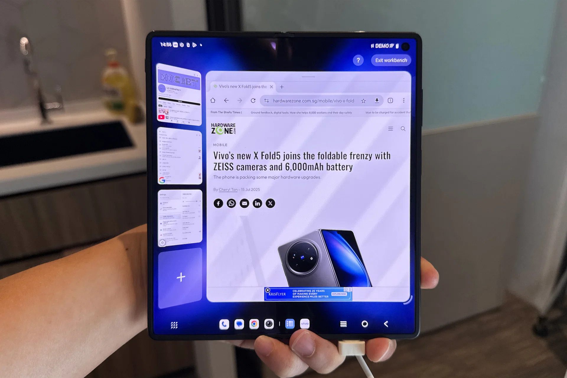 The Vivo X Fold5 retails for S$2,499 (16GB RAM + 512GB storage) and is available in Titanium Grey. Pre-orders start from 31 July to 7 August 2025, with official retail beginning on 8 August 2025.
