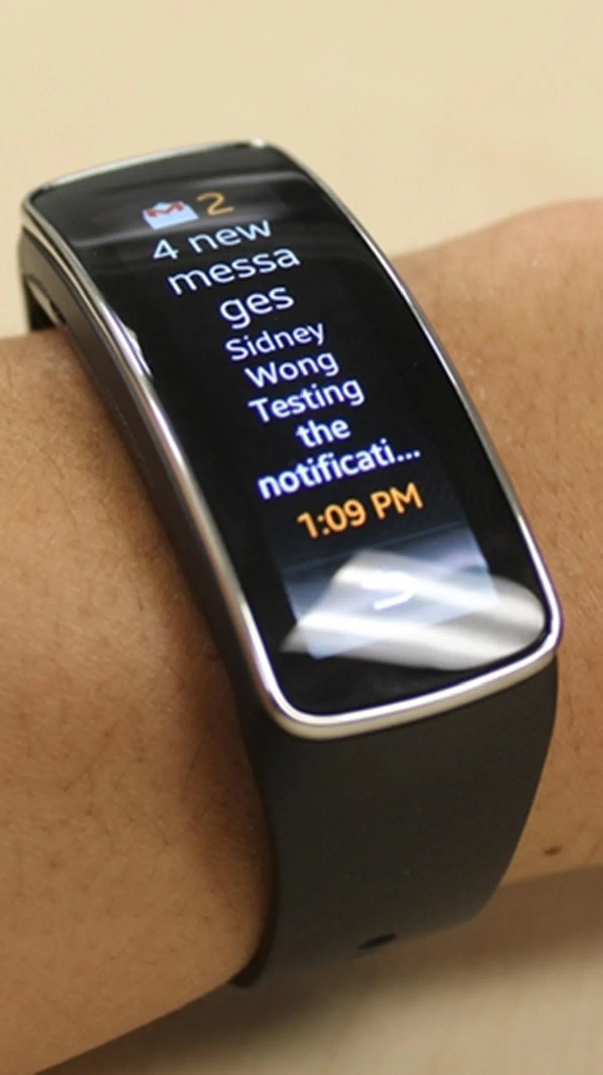 For example, you see a preview of new messages from Gmail, WeChat, and WhatsApp on the Gear Fit. To view the full text, you need to tap the Notifications icon on the device. Longer messages obviously require you to scroll more. If more than one message arrives at the same time, the contents blend into one single notification which can be confusing.