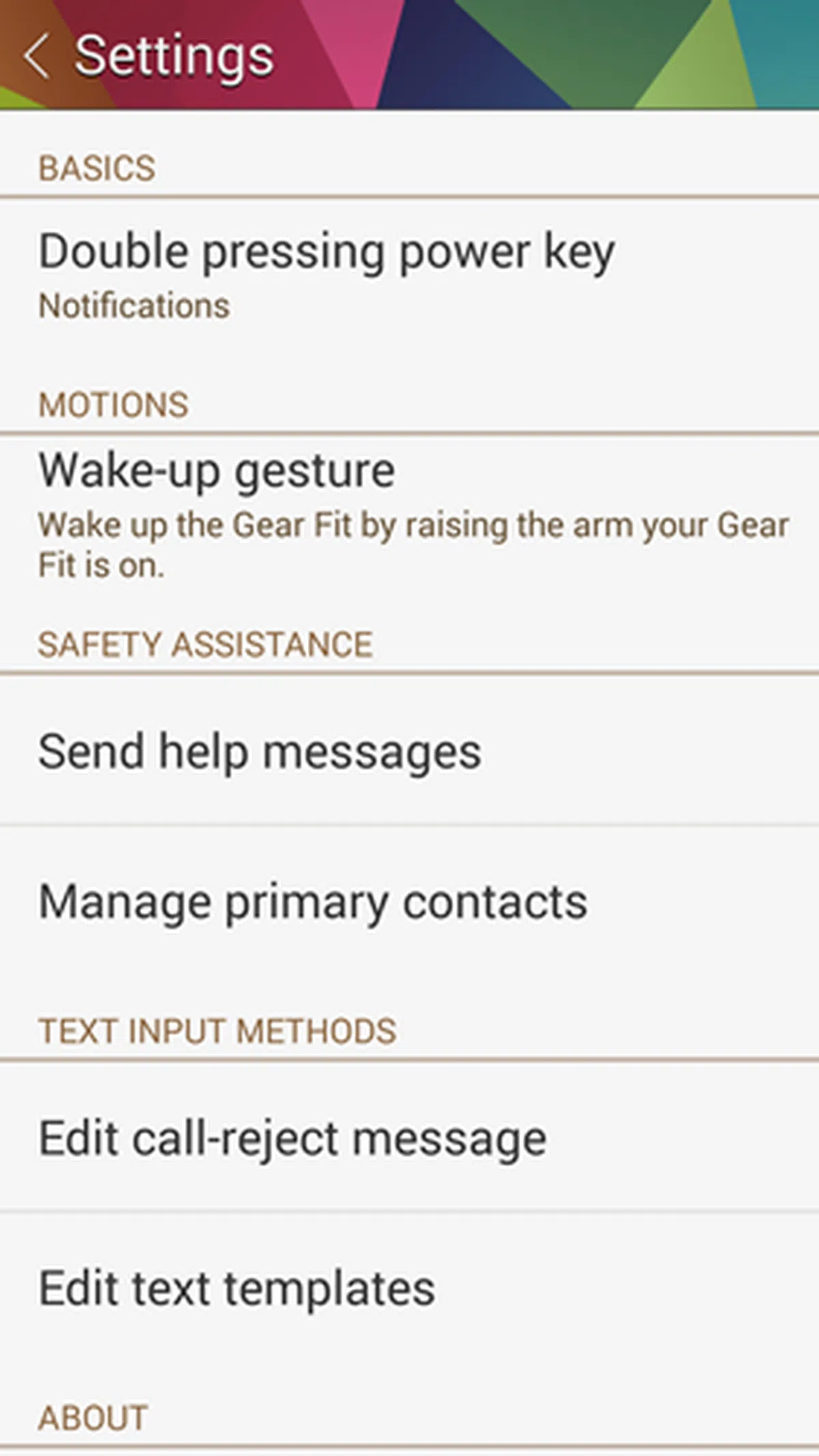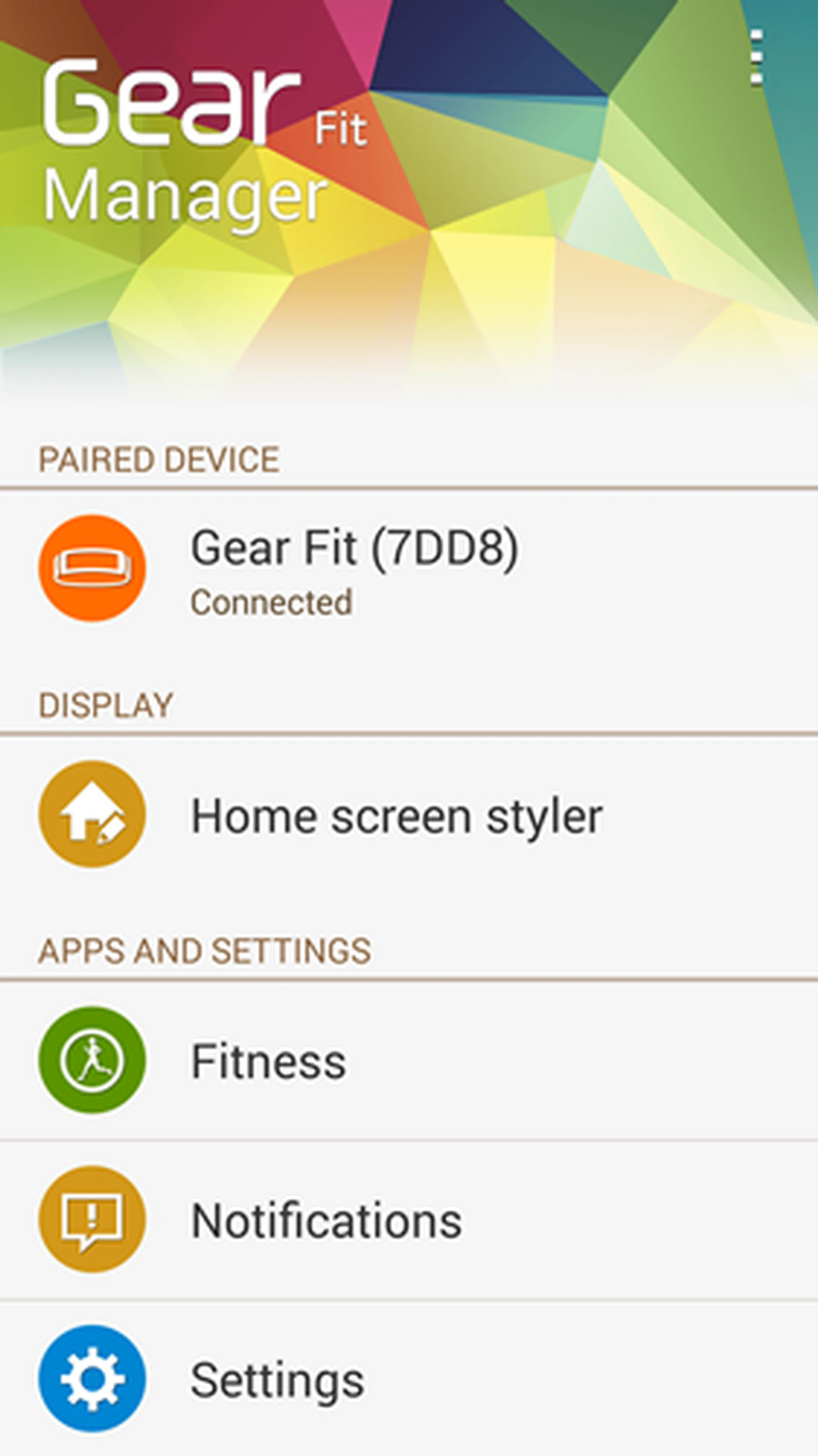 As the name suggests, the Gear Fit Manager app is where you personalize the interface and functions of the Gear Fit. Now, let's take a look at each section of the Manager app: