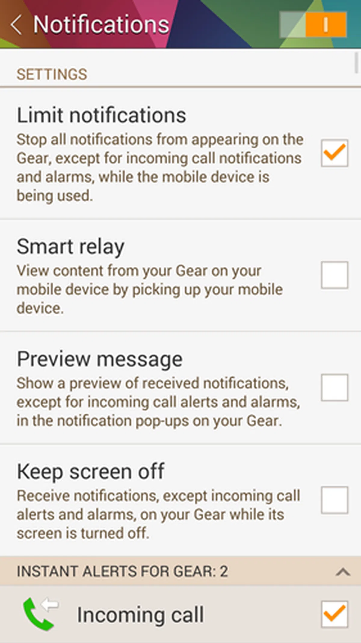 This is perhaps the most important section of the Gear Fit Manager app as it determines how useful the Gear Fit will be to you. This is where you select which type of notifications to receive on your Gear Fit. The notification system on the Gear Fit is slightly more polished in terms of support for third party apps and functionality compared to when the first Galaxy Gear was launched last year.