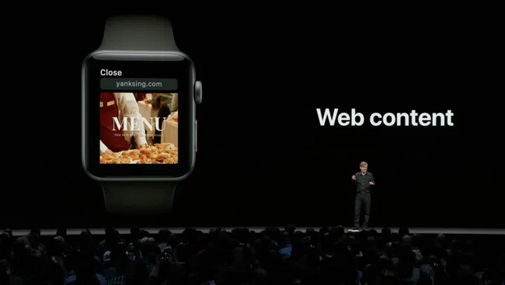 Plus, you can apparently view web content on the Watch as well? The demo didn’t show a standard browser on the Watch, but neatly optimized images and text from a website size just right for the Watch.
