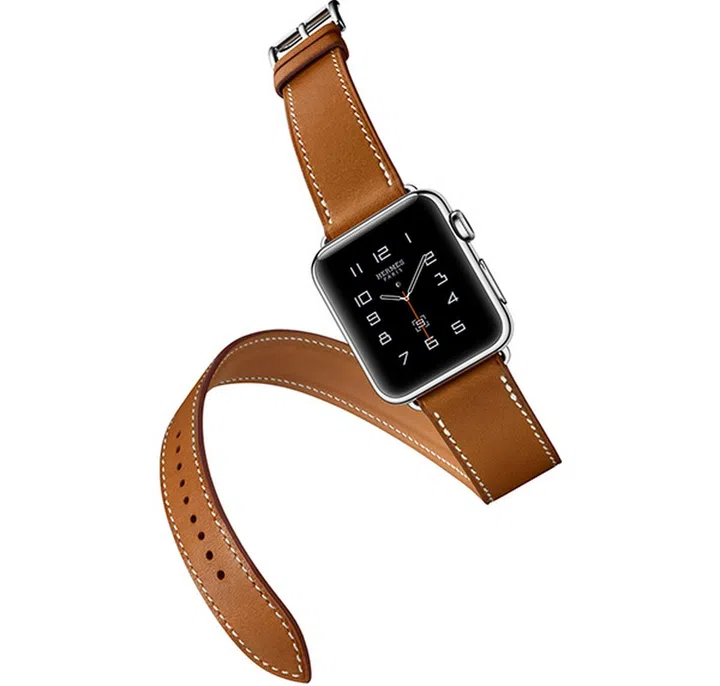 The Hermès leather strap comes in a few variations. The Double Tour is extra long, it wraps twice around the wrist for some extra style. It’s available for the 38 mm stainless steel Apple Watch in four colours: Fauve, Étain, Capucine and Bleu Jean.