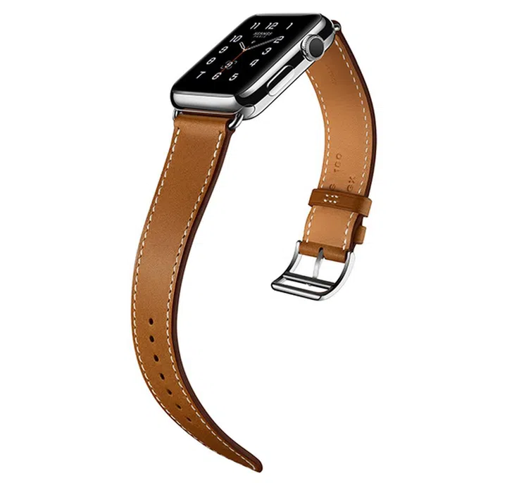 The Single Tour Hermès leather strap is a strap with a classic buckle, which according to Apple’s website, “recalls those on the straps of a horse’s girth.” Hmm, okay. It’s available for both the 38 mm and 42 mm Apple Watch editions with leather bands in Fauve and Noir. The 38 mm Watch is also available with a Capucine leather band.