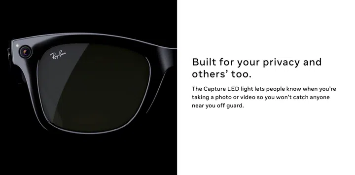 The discreet built-in cameras are a concern for others around you also, so Facebook says the glasses have an LED that comes on whenever the glasses are being used to take a photo or videos.