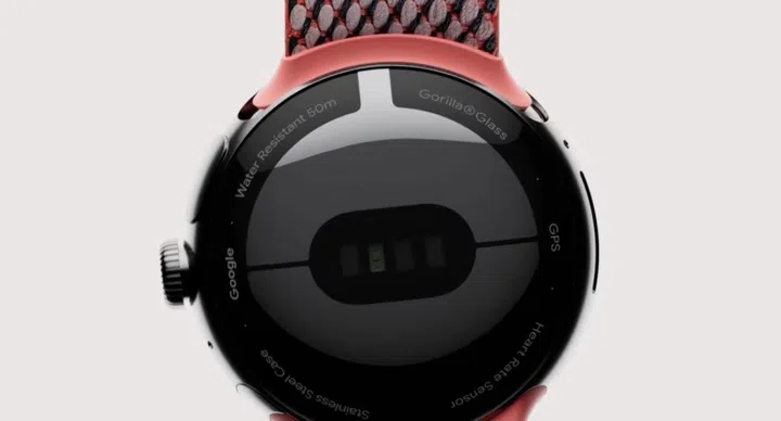 While Google did not reveal any hardware specifications at all on what the Pixel Watch was running on, or even the screen size and resolution, an image of the rear case shows some basic info, such as 50m water resistance, GPS capability, an ECG sensor, and Corning Gorilla Glass for the display. According to Google, the case is made from 80% recycled stainless steel.