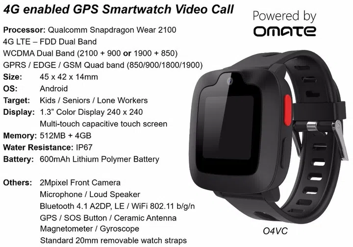 The design and usage of the Omate O4VC are simple since it’s catered for children, elderly folks, and skilled work in remote areas. As such, the smartwatch also packs GPS, and the combination of that with 4G and Wi-Fi hotspots allow the device to triangulate the wearer’s physical location. For further assistance, the watch also comes with 24/7 emergency services, although Omate did not expand on that point.